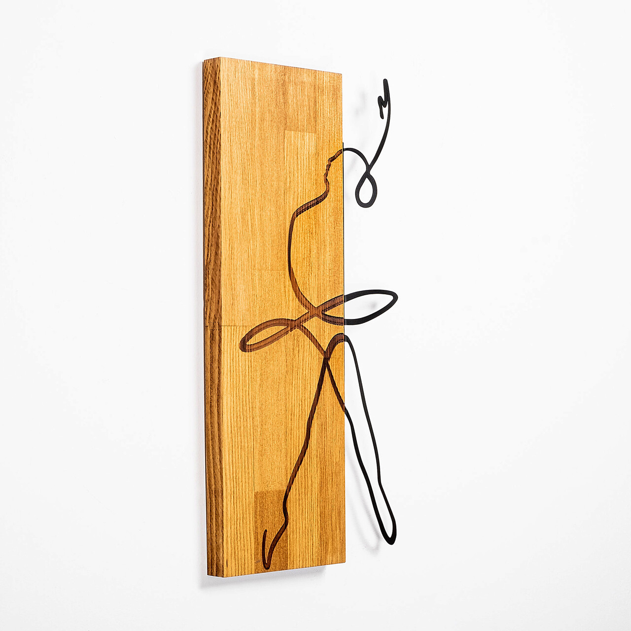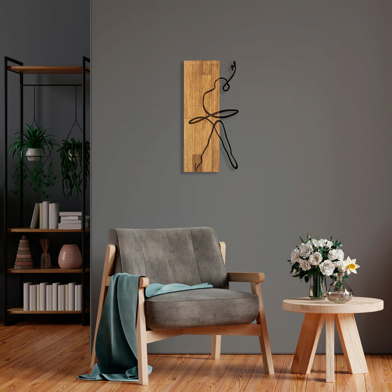 Decoratiune de perete, MA-299, 50% lemn/50% metal, Dimensiune: 58 x 30 cm, Nuc / Negru