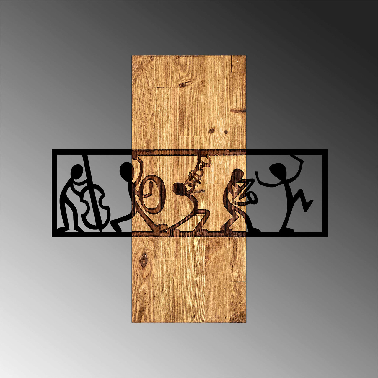 Decoratiune de perete, MA-301, 50% lemn/50% metal, Dimensiune: 58 x 61 cm, Nuc / Negru