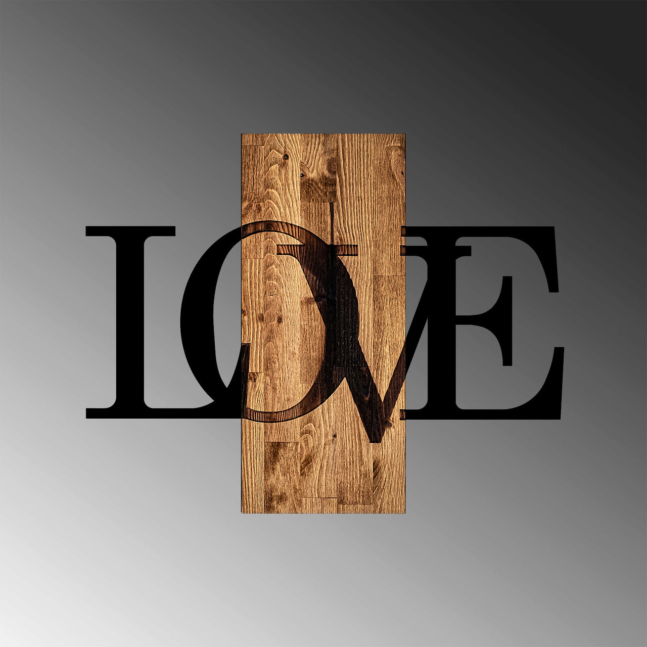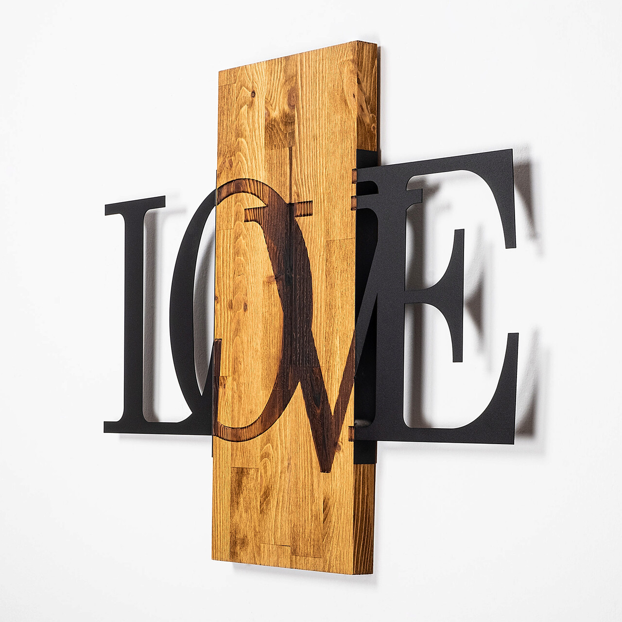 Decoratiune de perete, MA-303, 50% lemn/50% metal, Dimensiune: 58 x 73 cm, Nuc / Negru