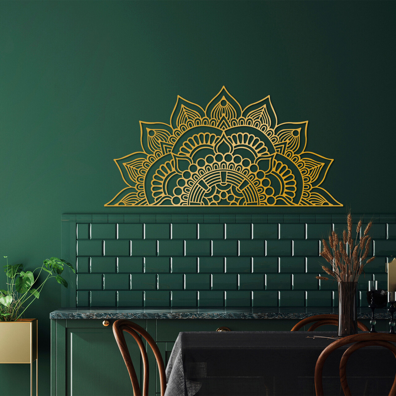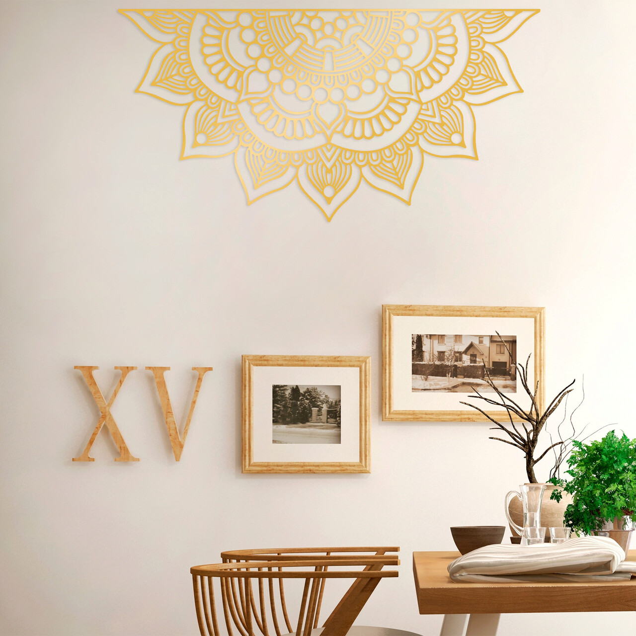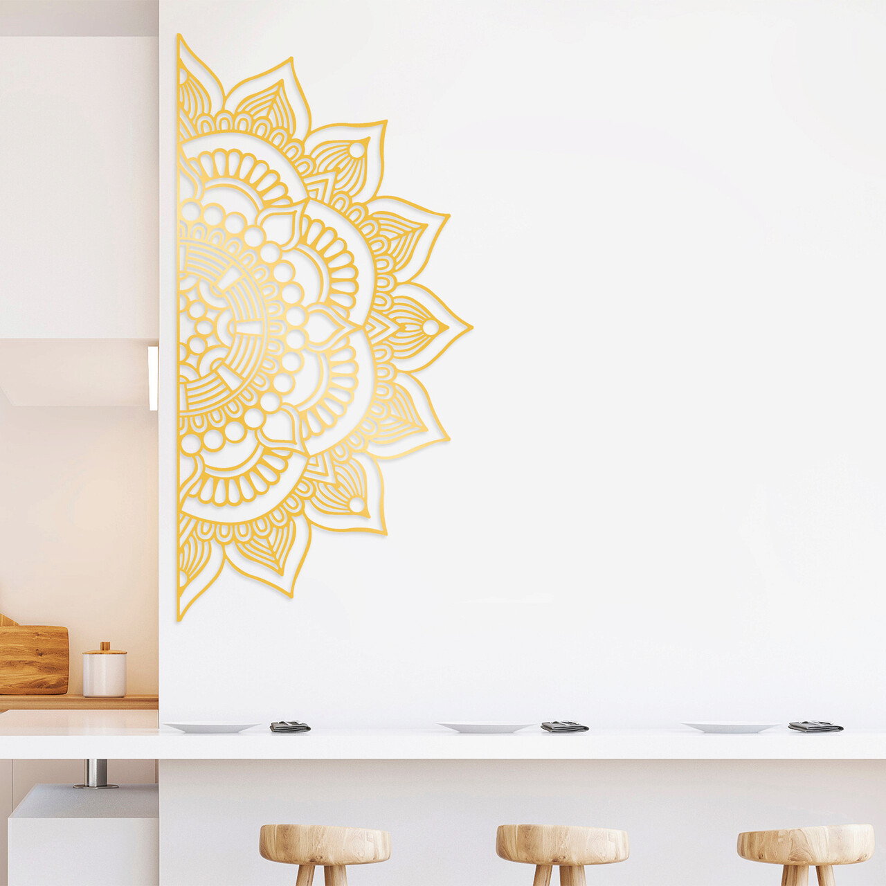 Decoratiune de perete, Mandala 3, Metal, Dimensiune: 153 x 78 cm, Auriu