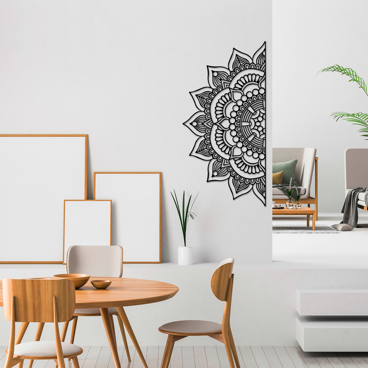 Decoratiune de perete, Mandala 3, Metal, Dimensiune: 153 x 78 cm, Negru