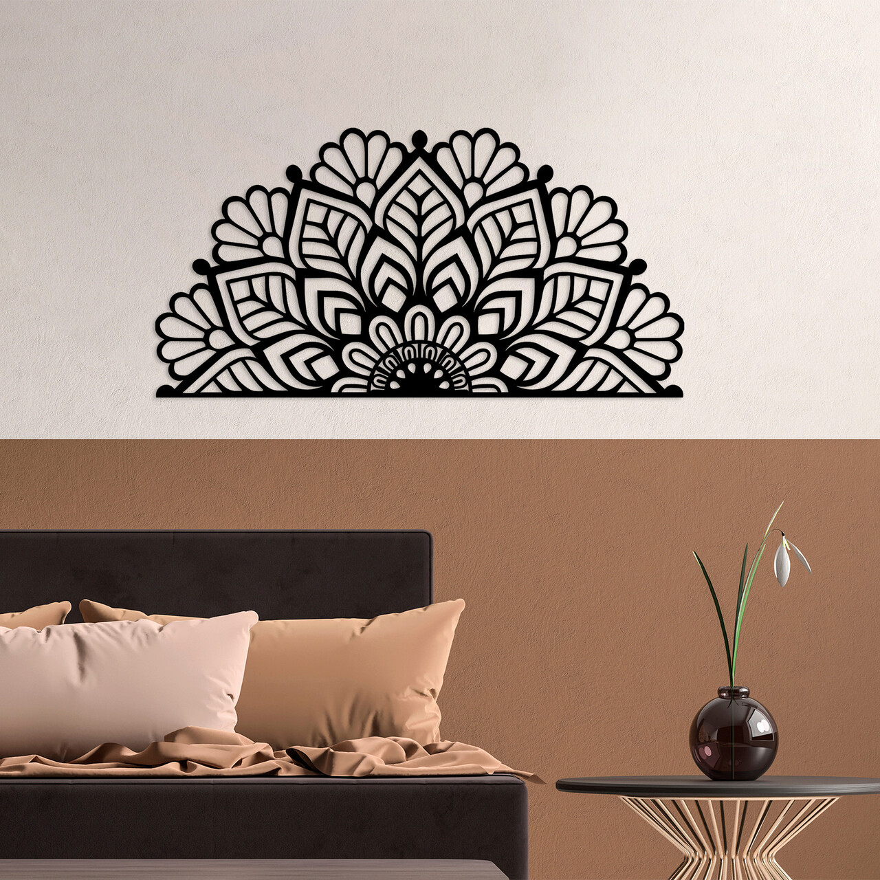 Decoratiune de perete, Mandala-S-2, Metal, Dimensiune: 117 x 1,5 x 59 cm, Negru