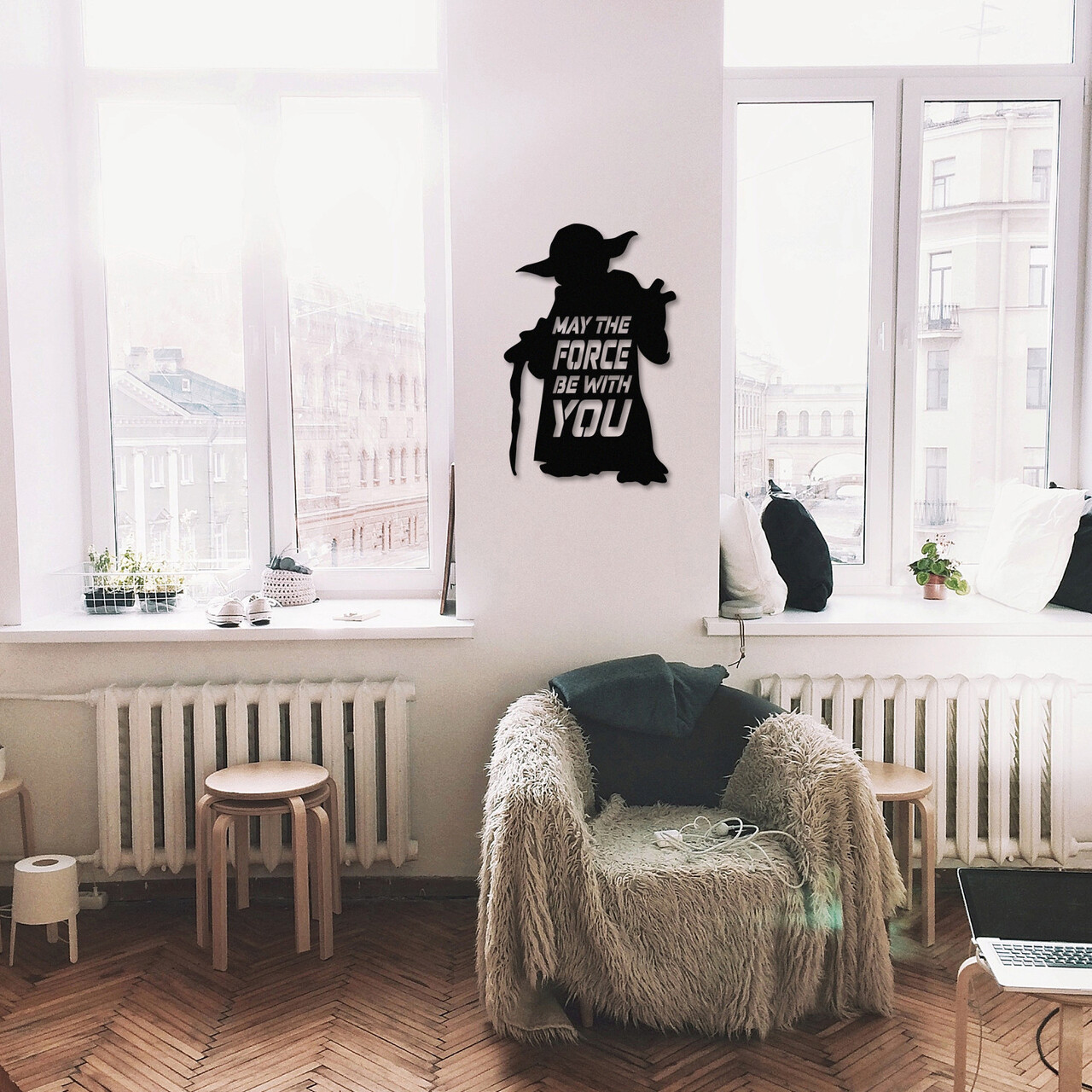 Decoratiune de perete, May The Force Be With You, metal, 33 x 50 cm, negru