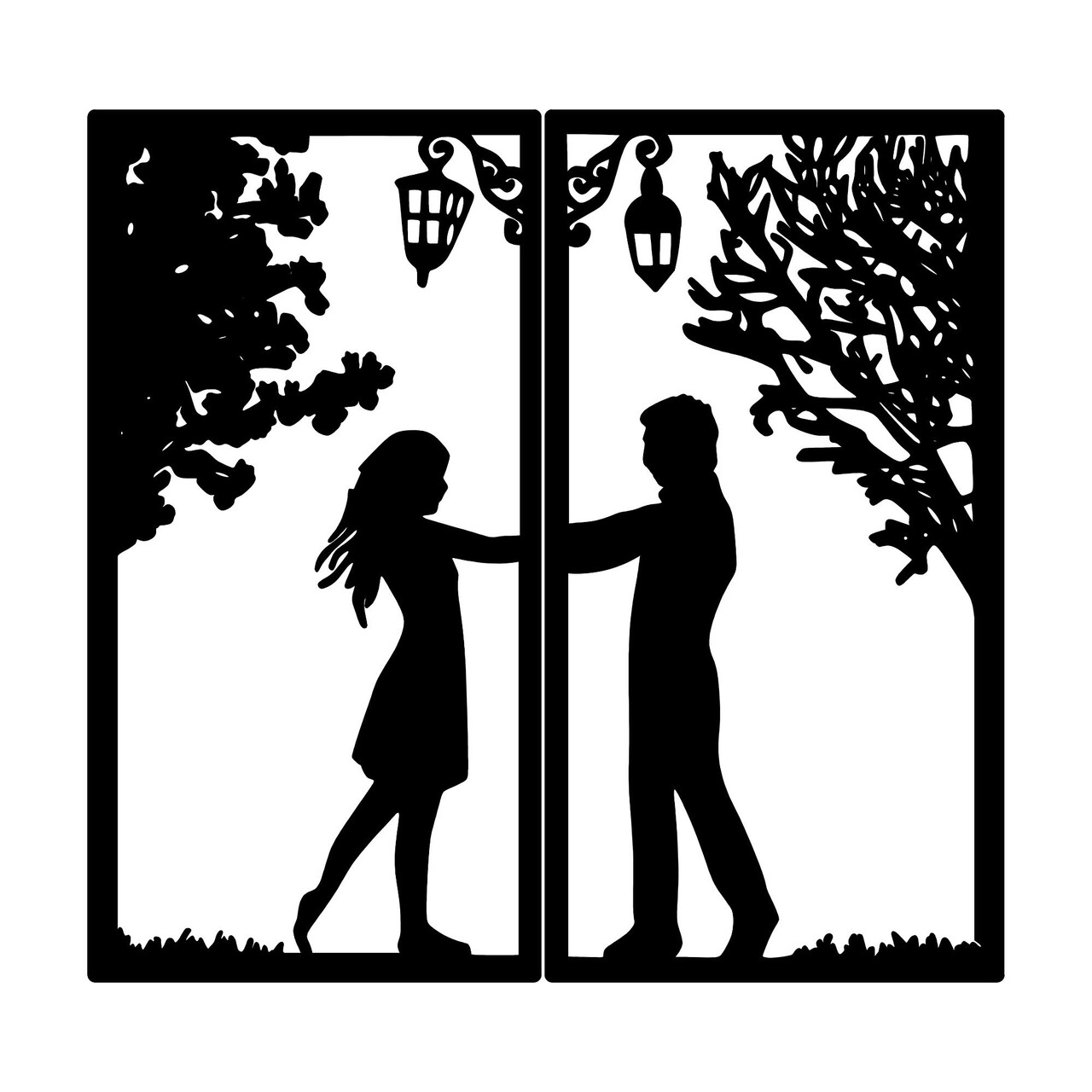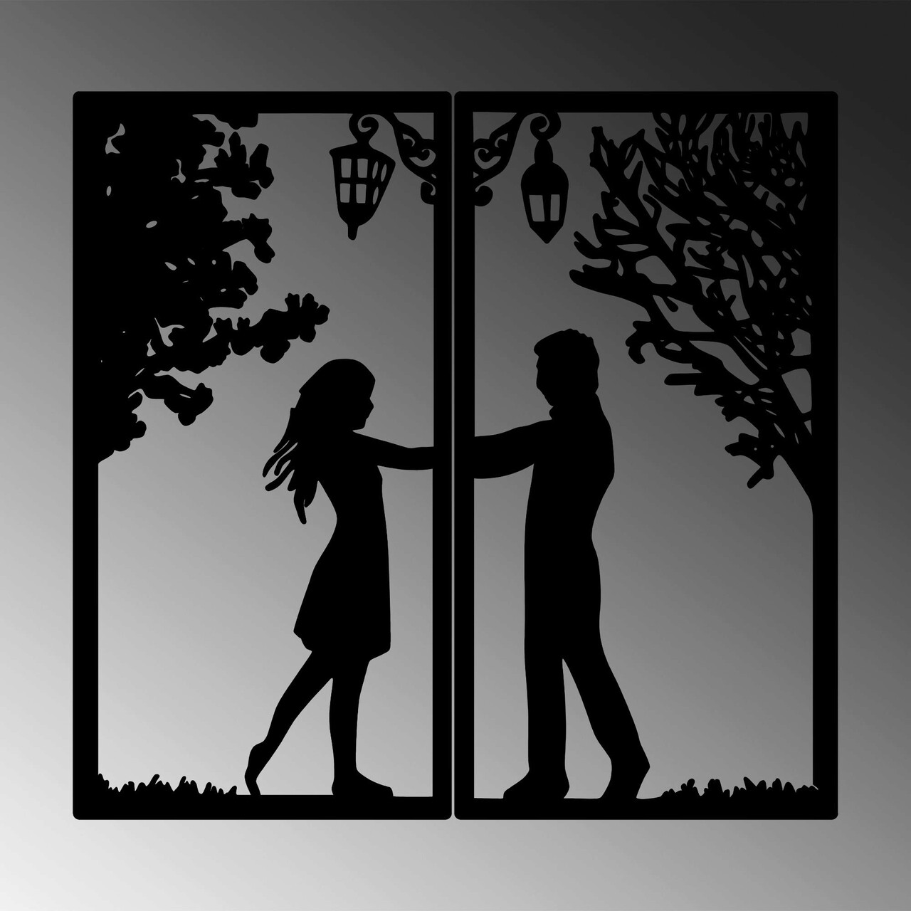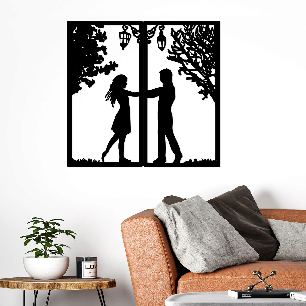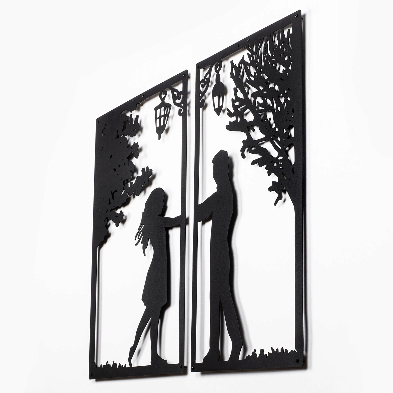 Decoratiune de perete, Meeting With Love, Metal, 34 x 66 cm, 2 piese, Negru