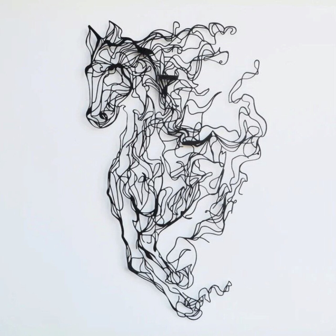 Decoratiune de perete, Metal Horse Line Art, Otel, 99 x 62 cm, Negru