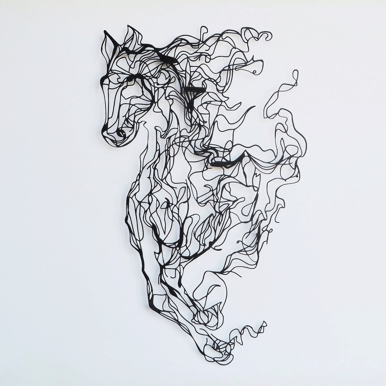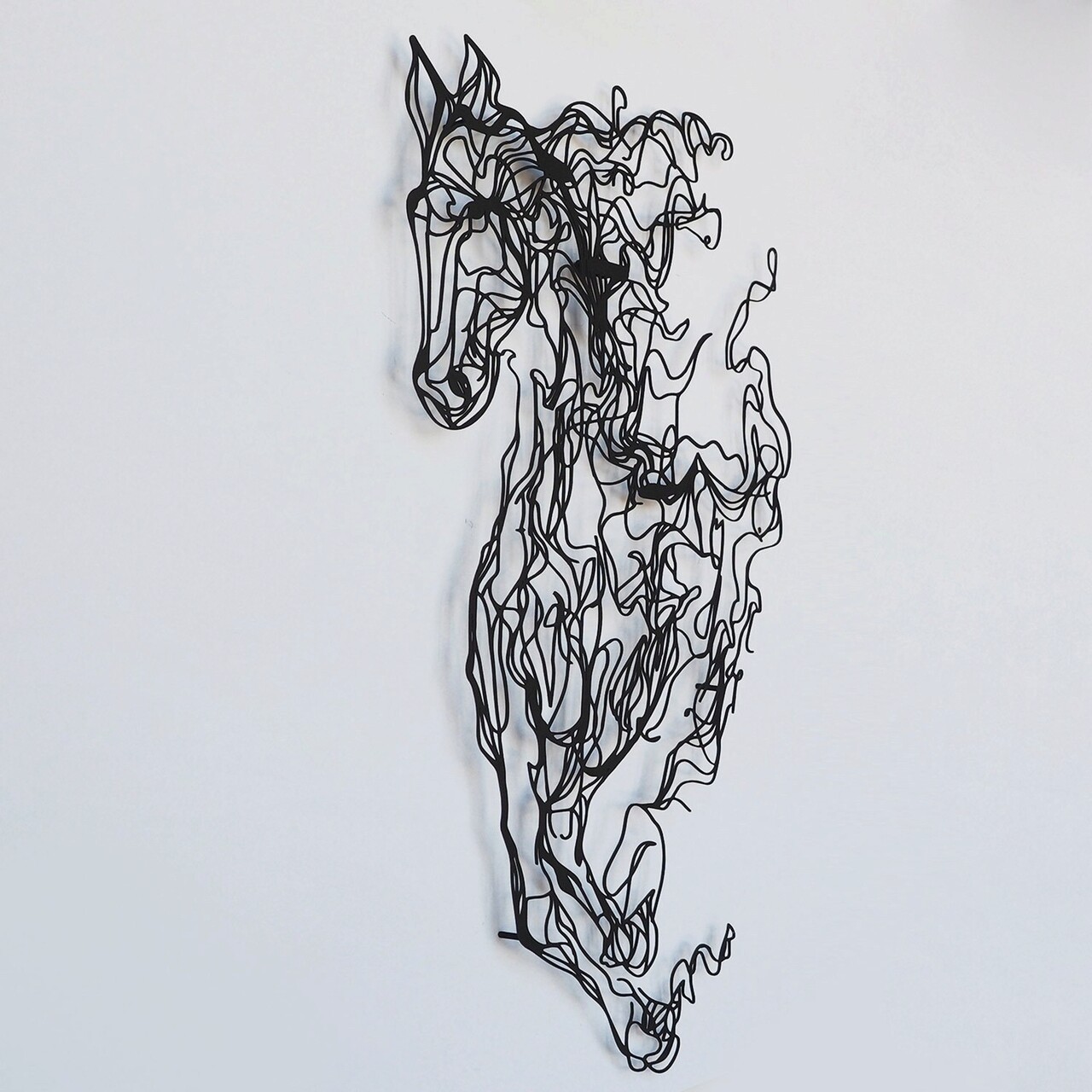 Decoratiune de perete, Metal Horse Line Art, Otel, Dimensiune: 66 x 41 cm, Negru