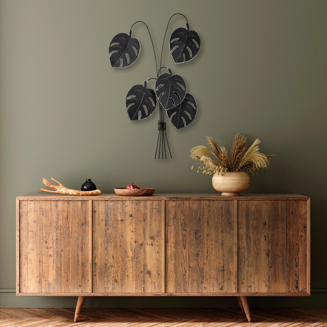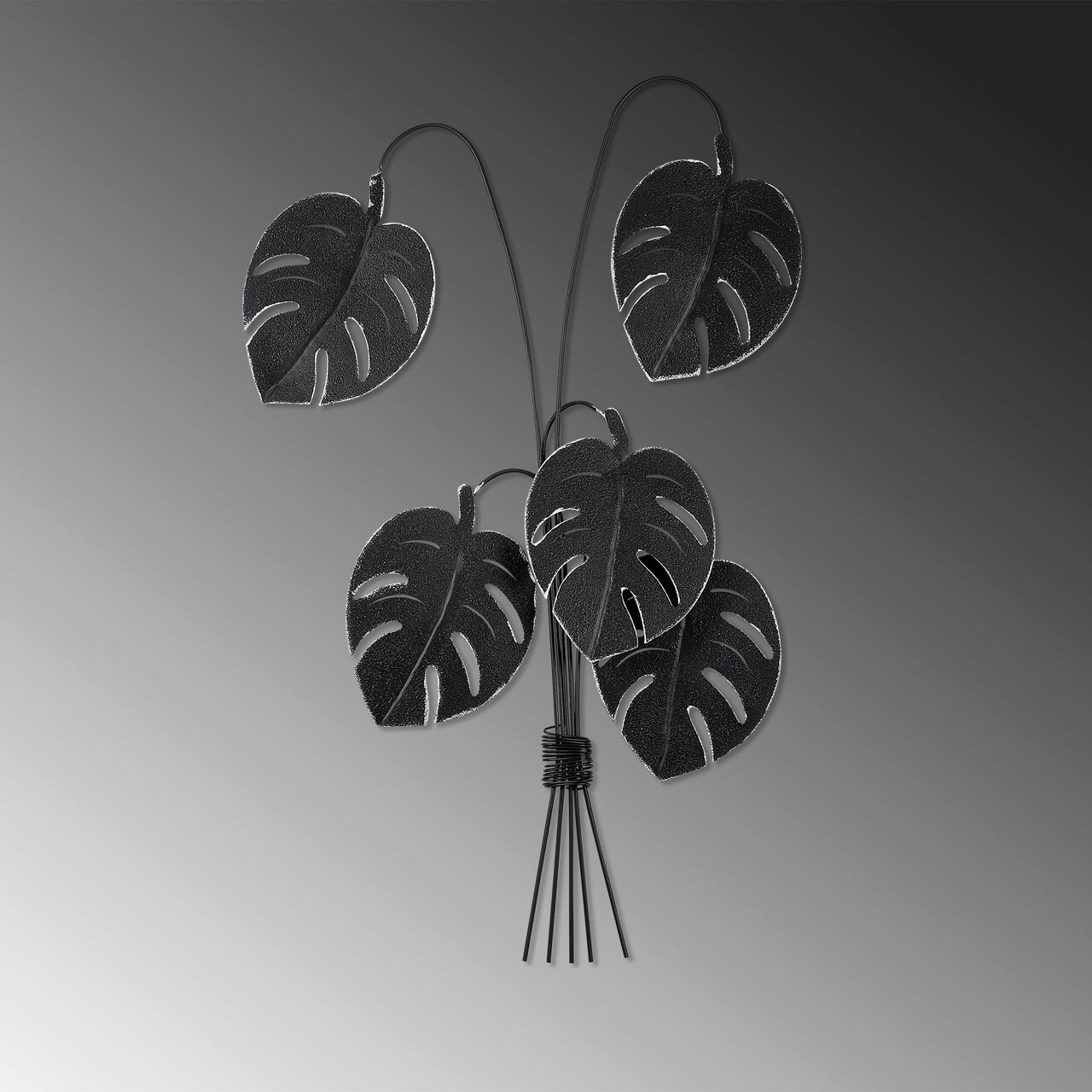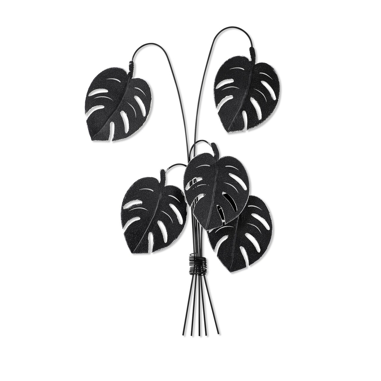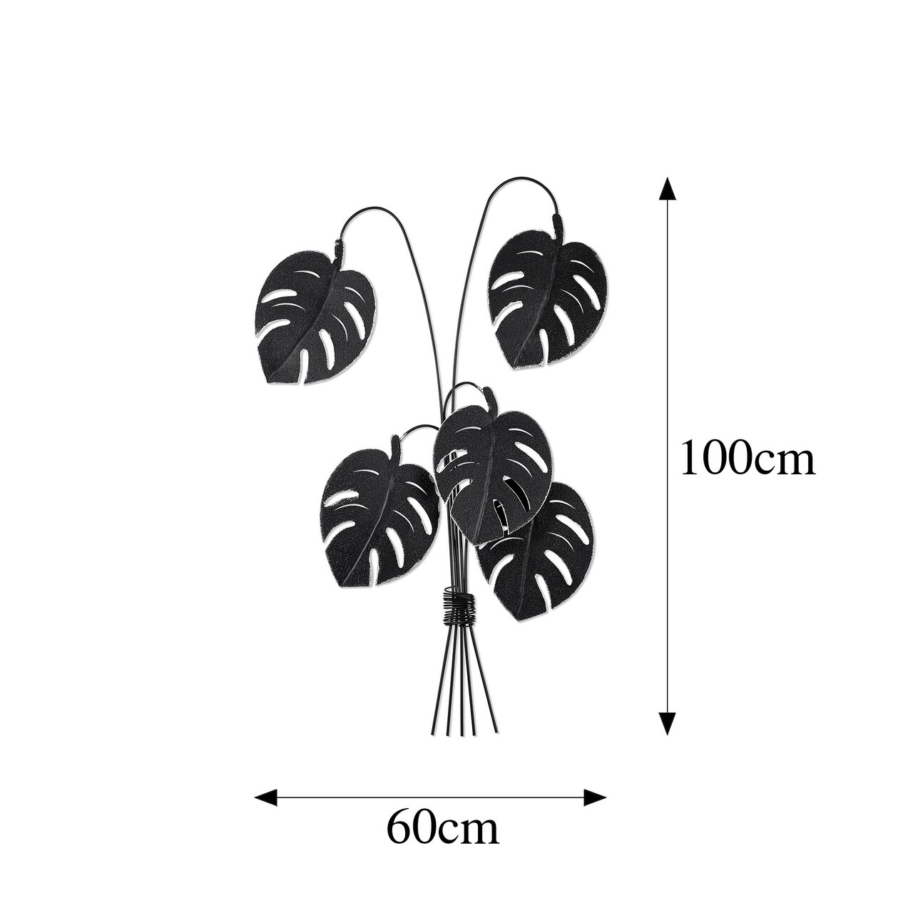Decoratiune de perete, Monstera, Metal, Dimensiune: 60 x 100 x 12 cm, Negru