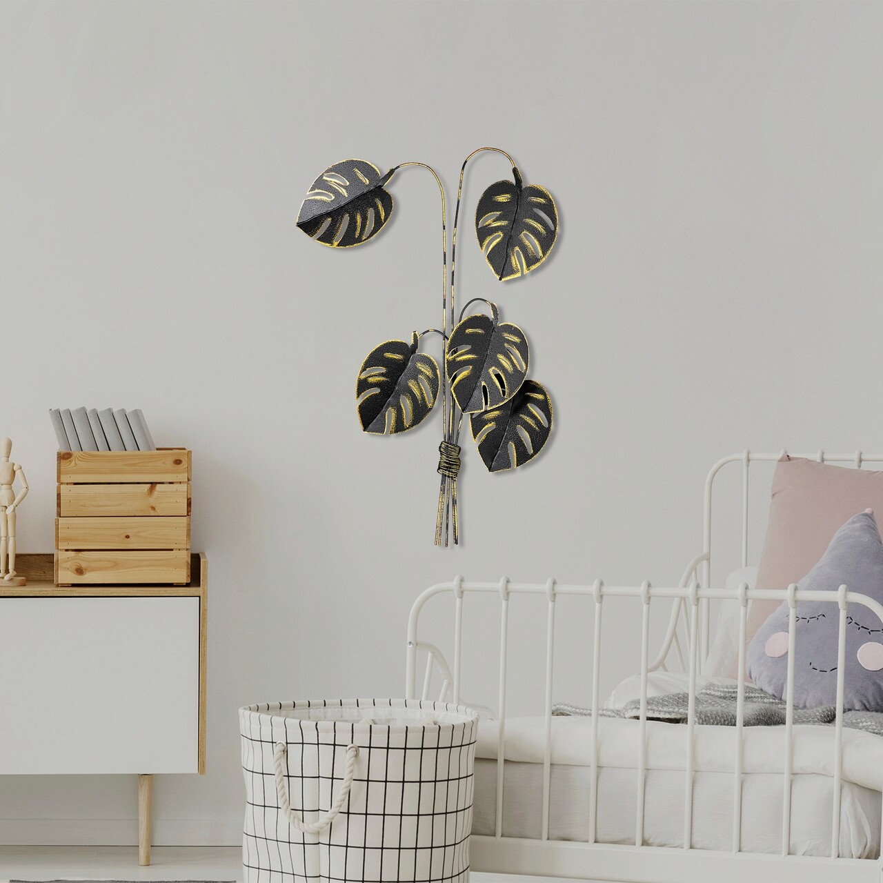 Decoratiune de perete, Monstera, Metal, Dimensiune: 68 x 98 cm, Multicolor