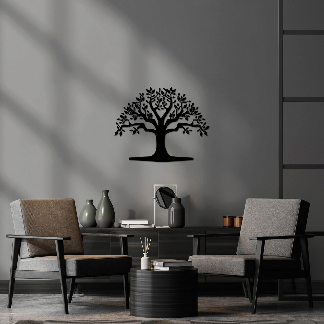Decoratiune de perete, Monumental Tree 20, Metal, Dimensiune: 70 x 55 cm, Negru