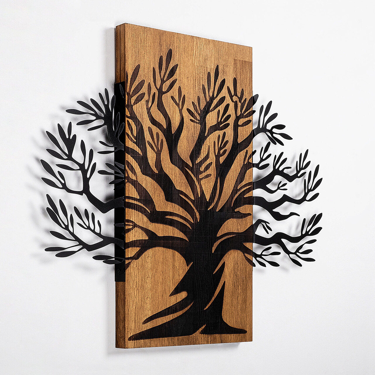 Decoratiune de perete, Monumental Tree, 50% lemn/50% metal, Dimensiune: 67 x 58 cm, Nuc / Negru