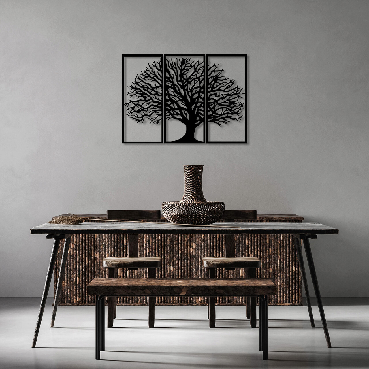 Decoratiune de perete, Monumental Tree, Metal, 98 x 69 cm, Negru