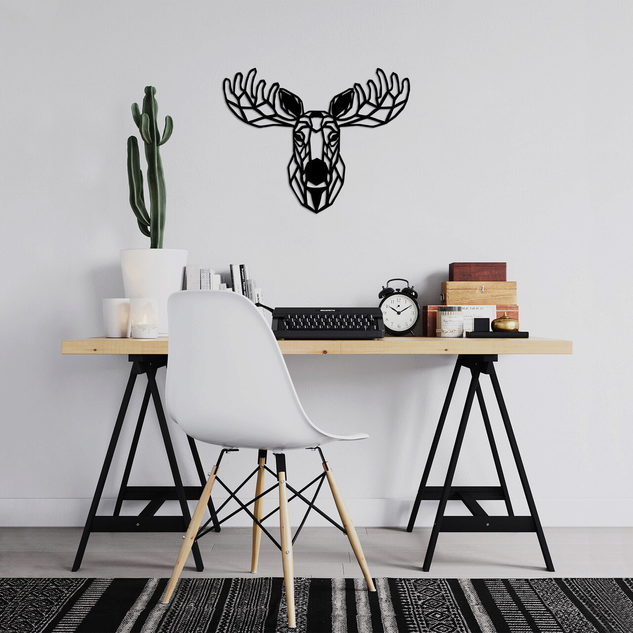Decoratiune de perete, Moose, Metal, Dimensiune: 70 x 54 cm, Negru