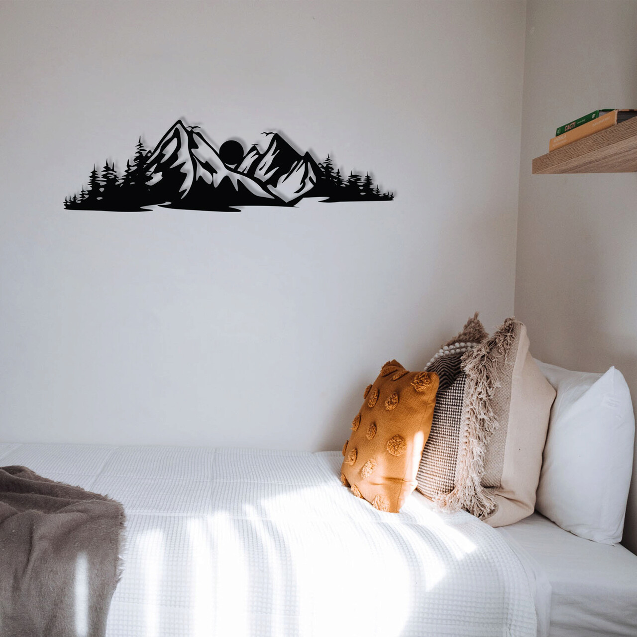 Decoratiune de perete, Mountain 2, metal, 68 x 19 cm, negru