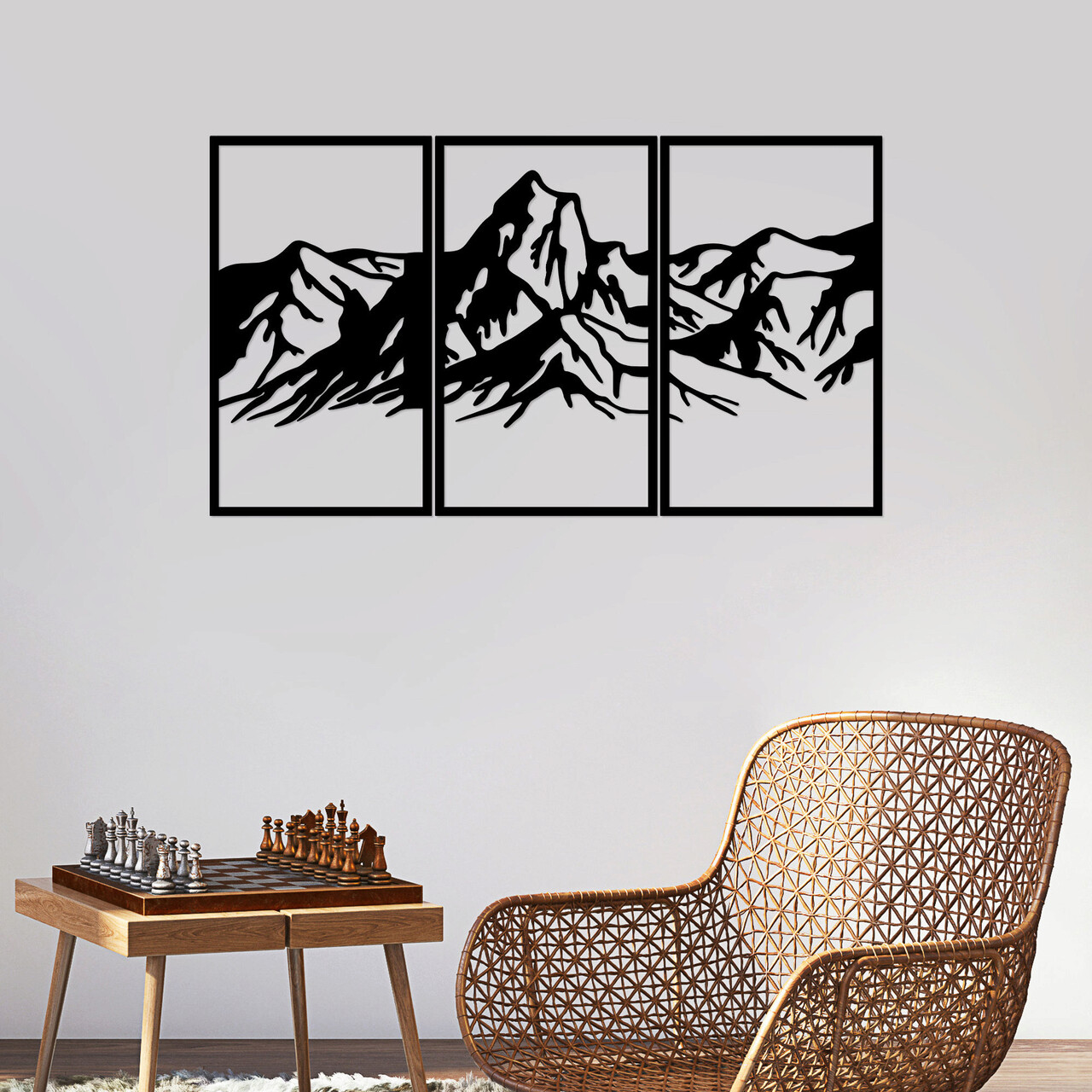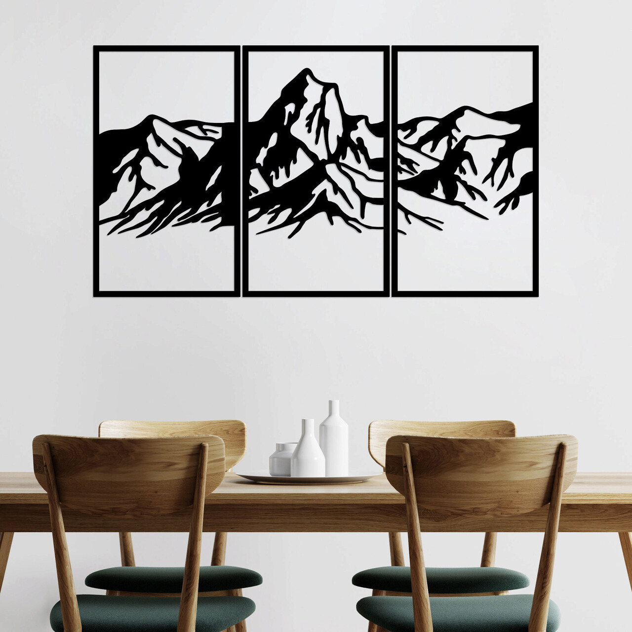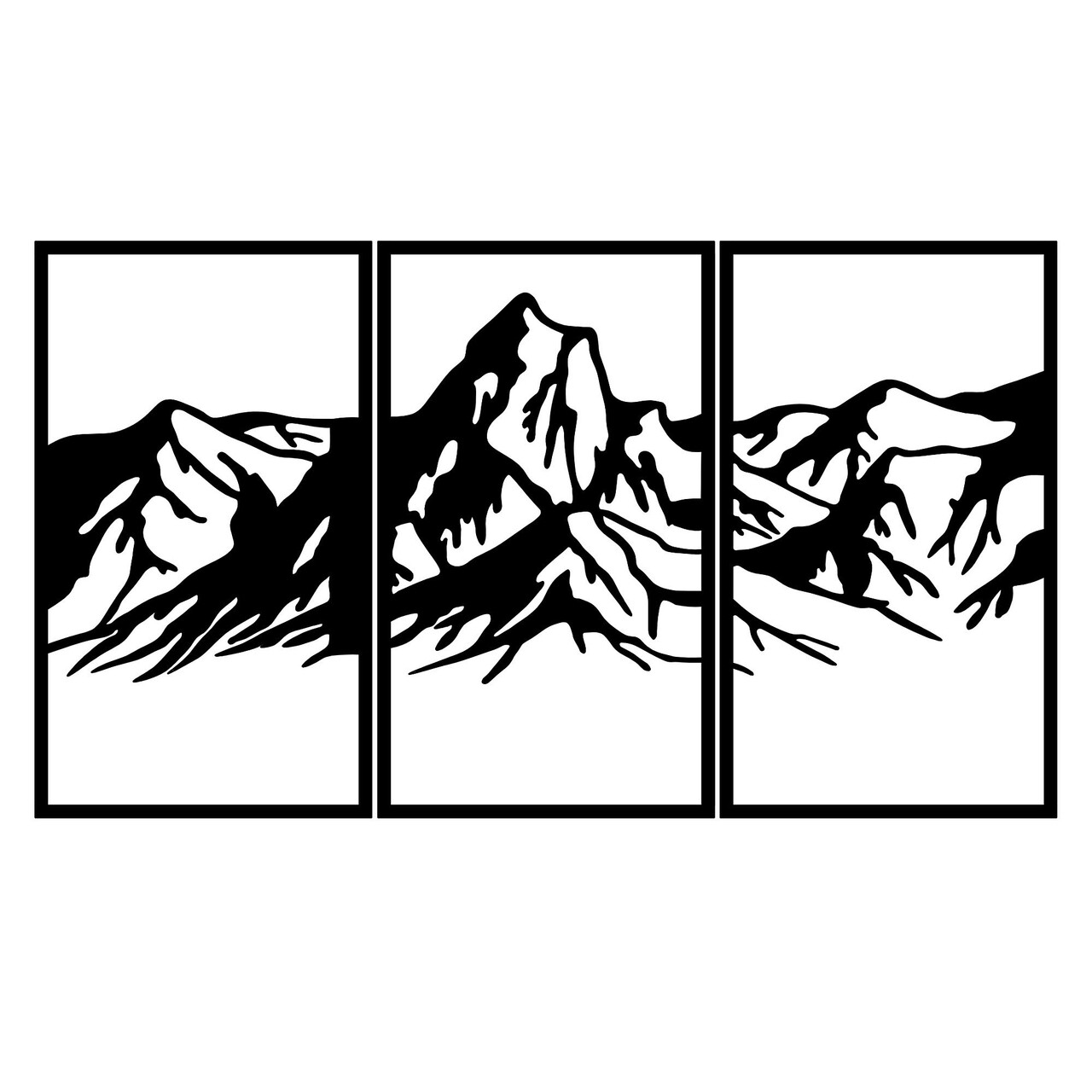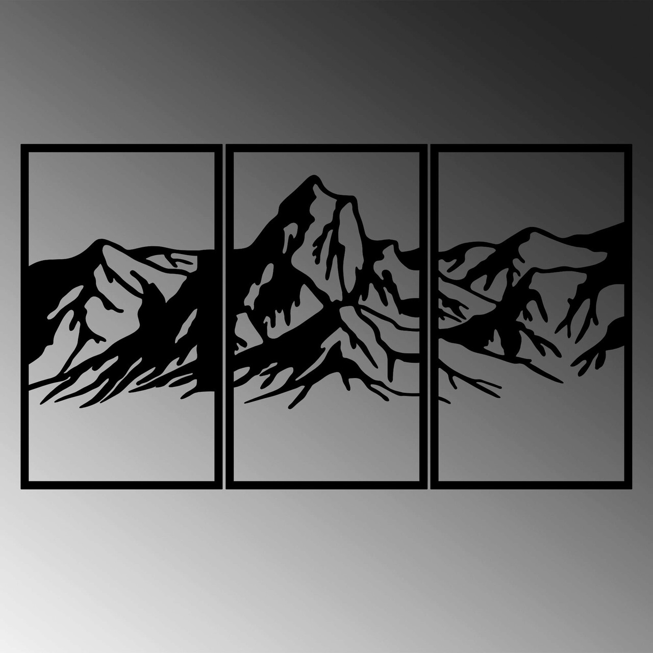 Decoratiune de perete, Mountain 4, Metal, 42 x 72 cm, 3 piese, Negru