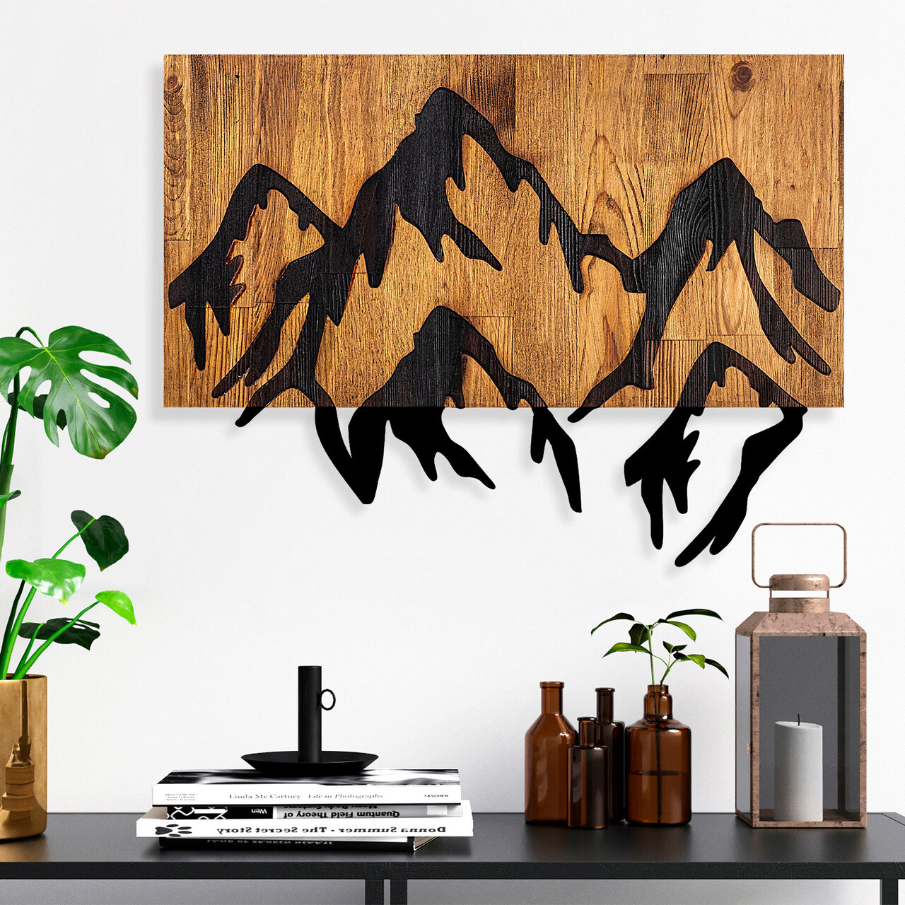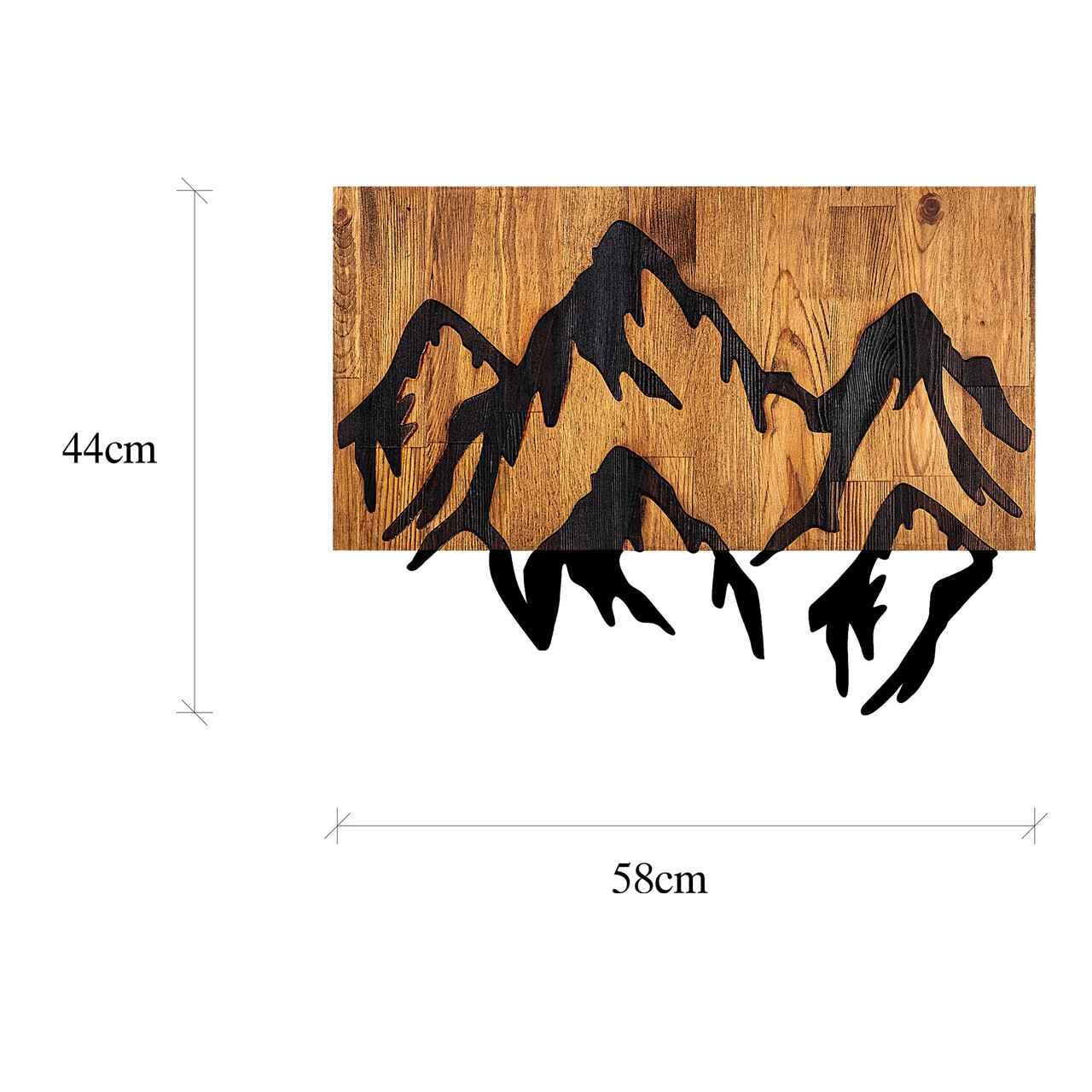 Decoratiune de perete, Mountain 5, Lemn/metal, Dimensiune: 58 x 3 x 44 cm, Negru / Nuc deschis