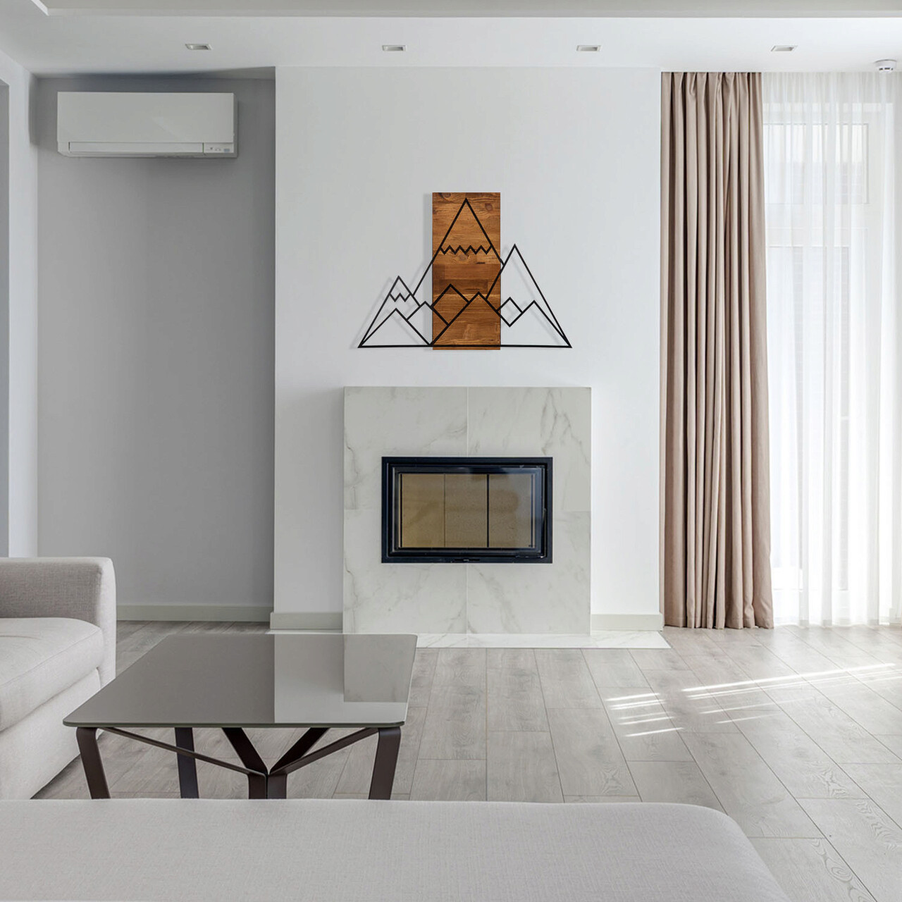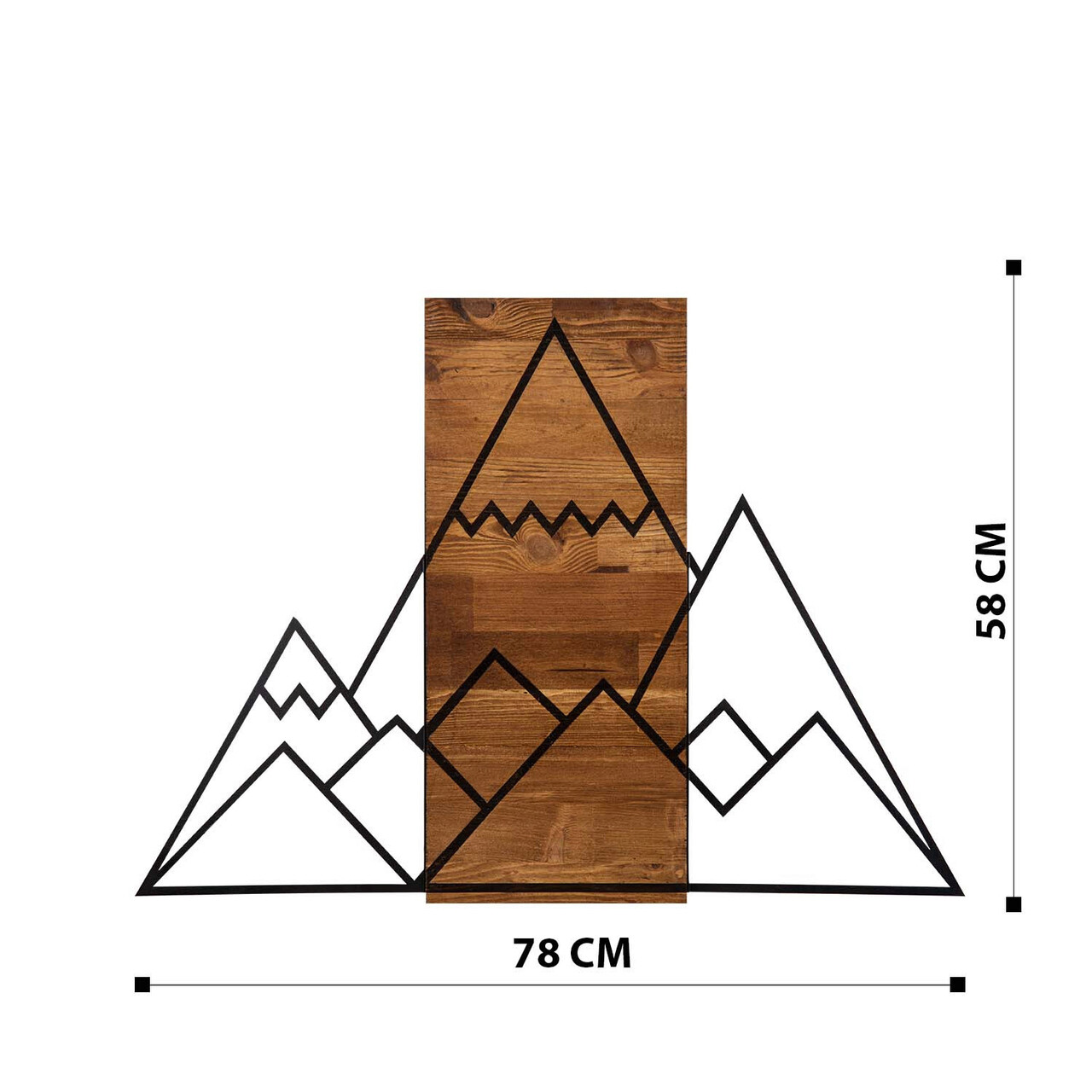 Decoratiune de perete, Mountain, lemn/metal, 78 x 58 cm, negru/maro