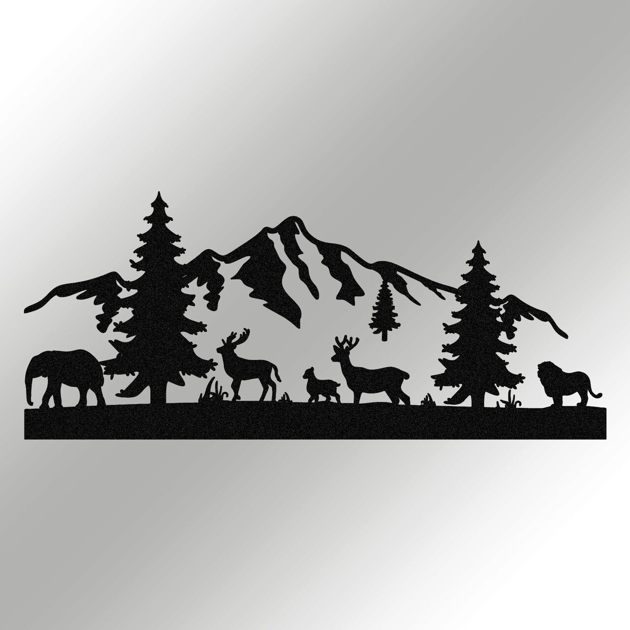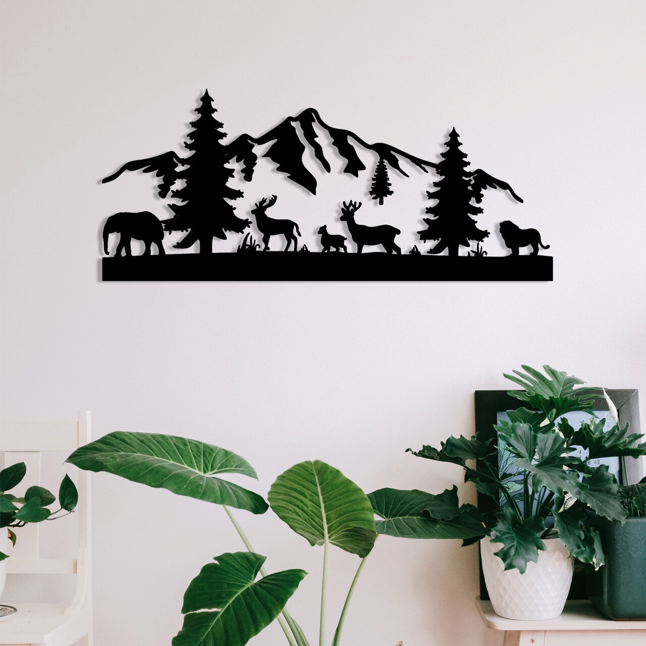 Decoratiune de perete, Mountain, metal, 70 x 30 cm, negru