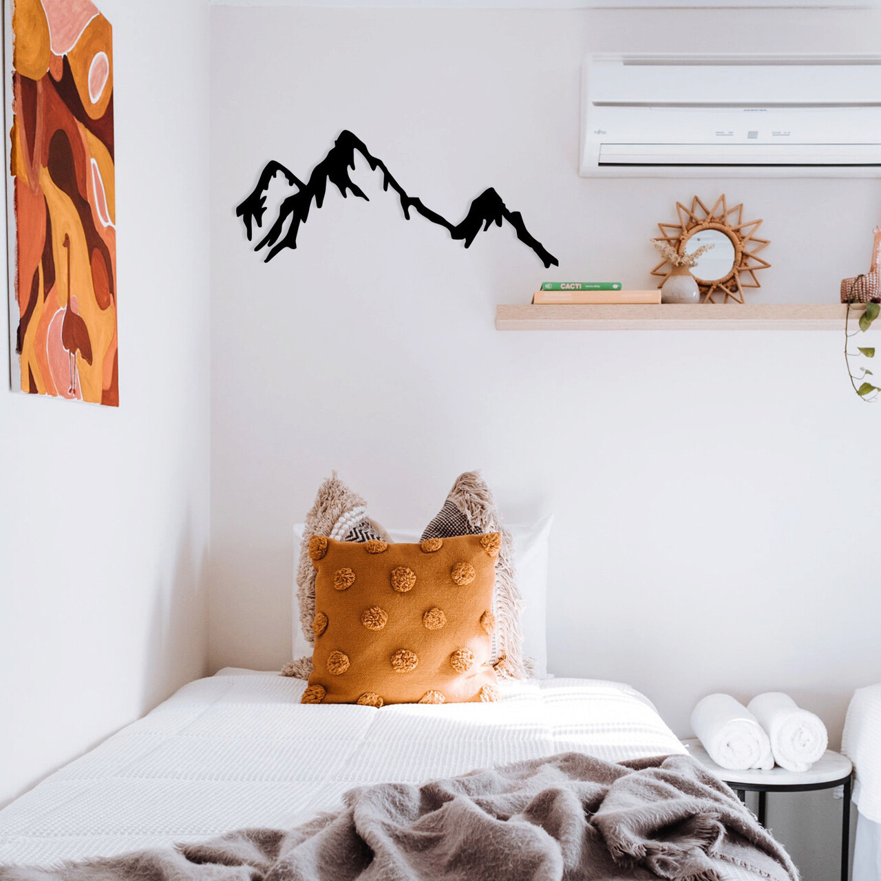 Decoratiune de perete, Mountain Metal Decor, metal, 70 x 30 cm, negru