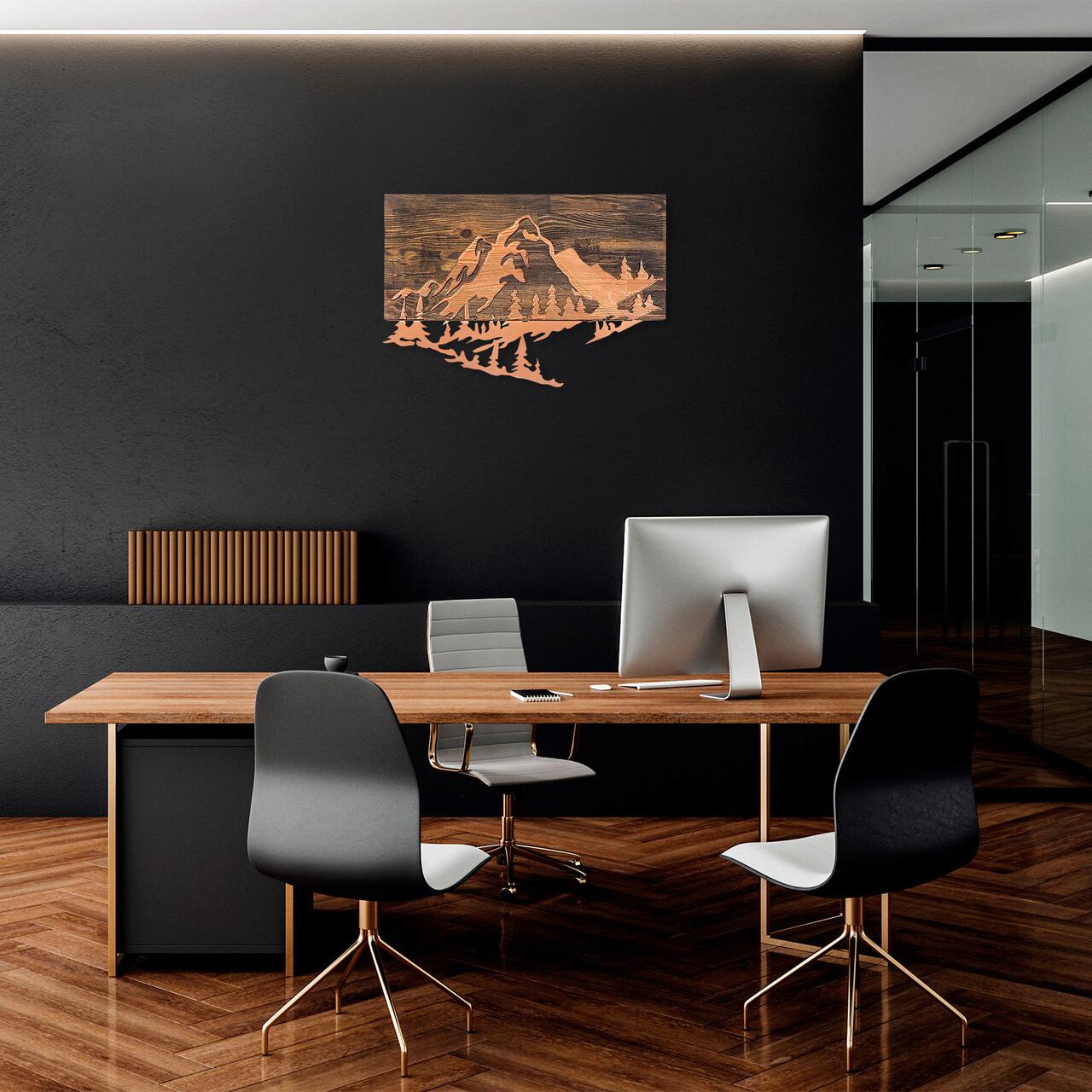Decoratiune de perete, Mountain v2, 50% lemn/50% metal, Dimensiune: 58 x 38 cm, Nuc / Cupru