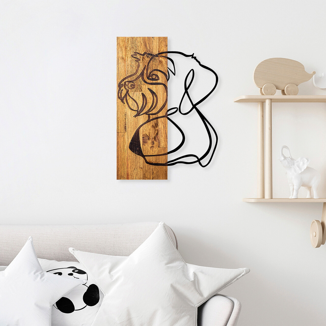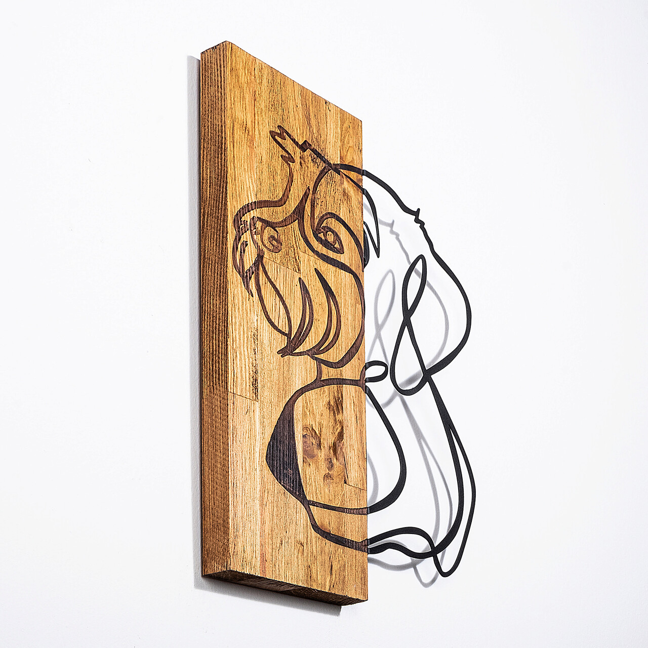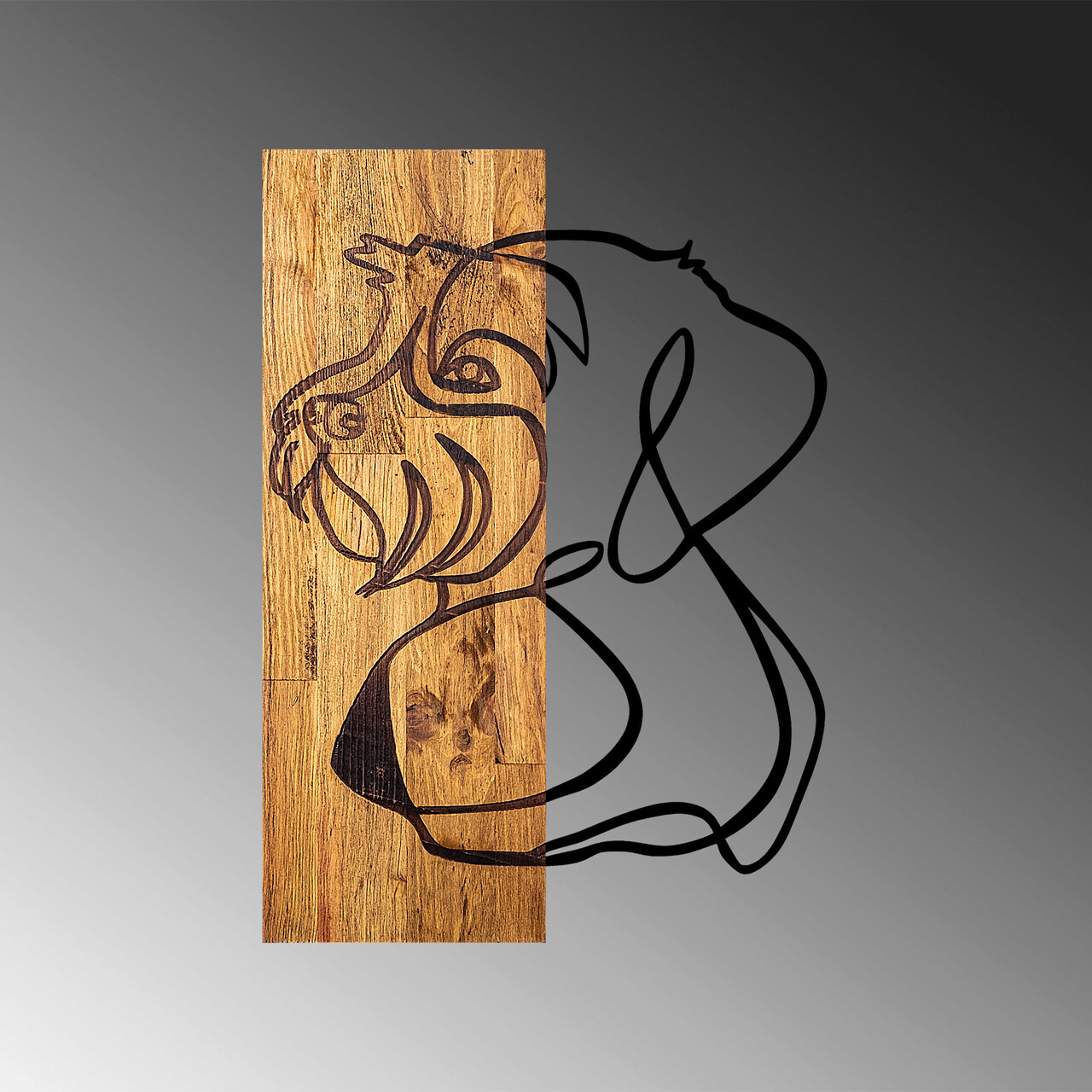 Decoratiune de perete, Mr.Dog, 50% lemn/50% metal, Dimensiune: 35 x 3 x 50 cm, Negru / Nuc deschis