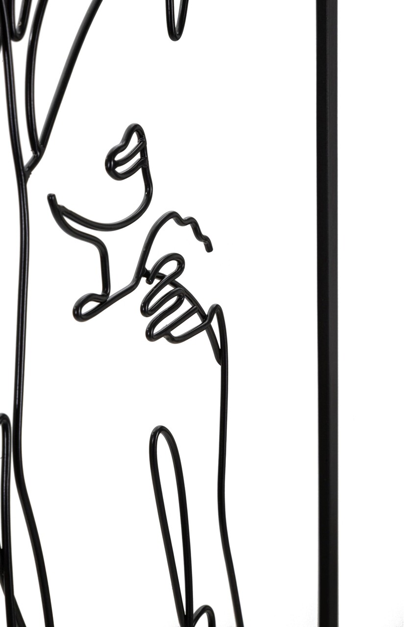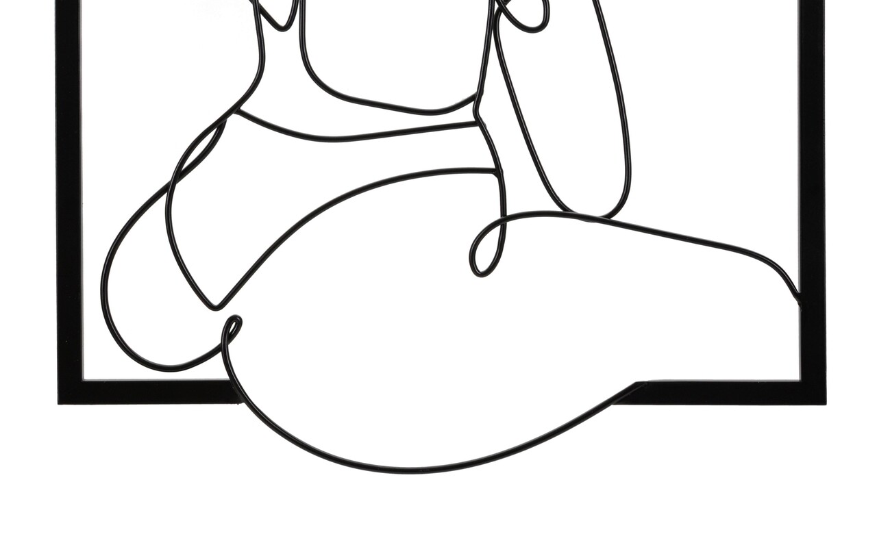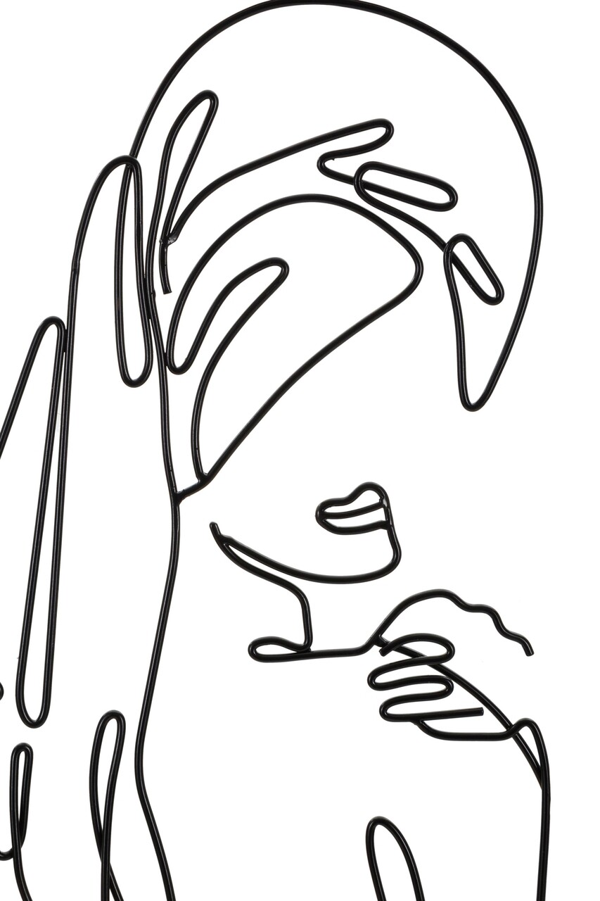 Panou decorativ mural 3D din metal negru cu trasaturi delicate si sinuoase care compun figura unei femei cu coafura asezata cu spatele.