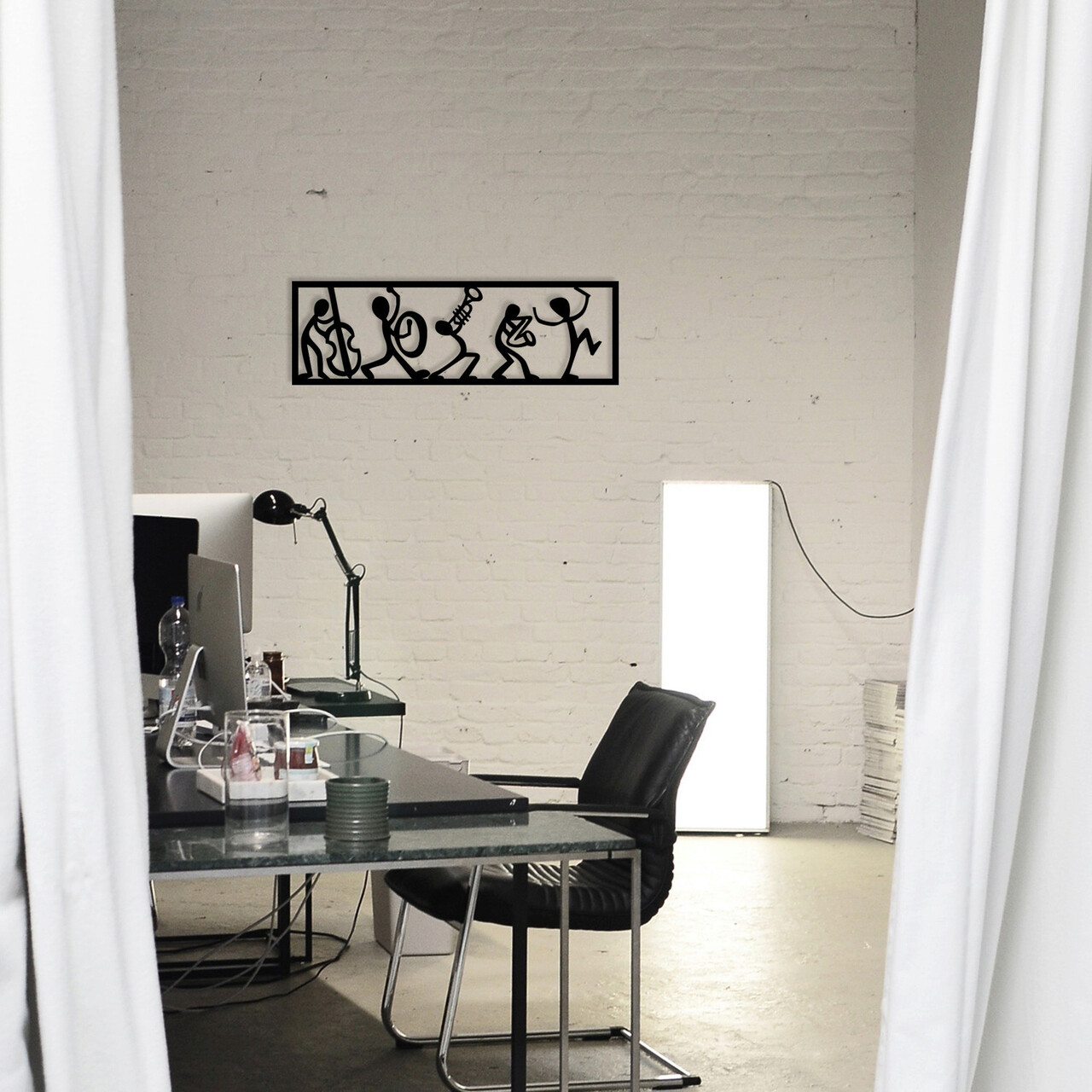 Decoratiune de perete, Musicians, metal, 60 x 19 cm, negru