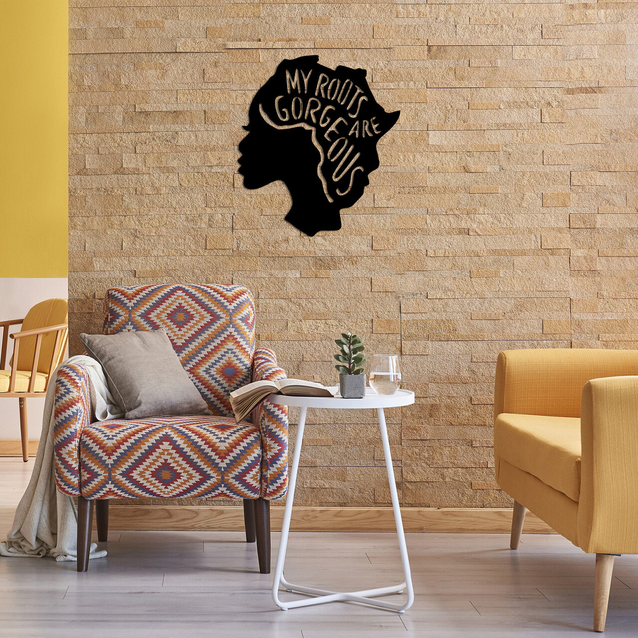 Decoratiune de perete, My Roots Are Gorgeous, Metal, Dimensiune: 62 x 70 cm, Negru