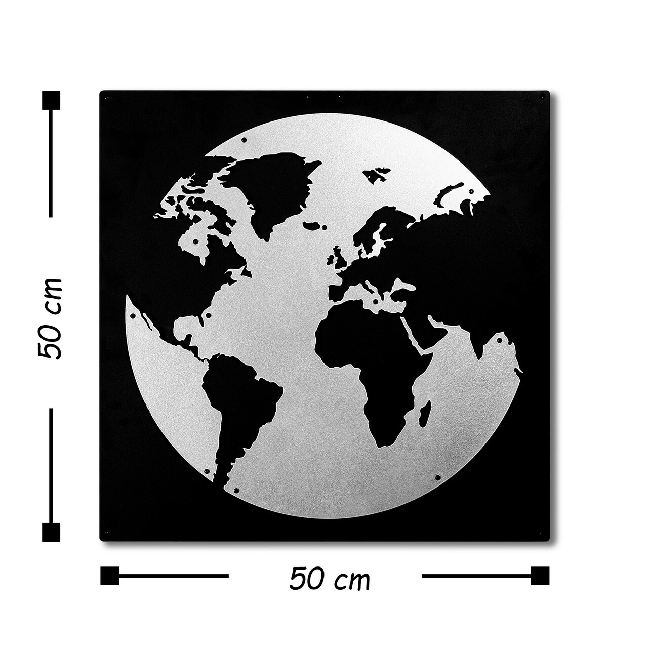 Decoratiune de perete, My World 2, Metal, Dimensiune: 50 x 50 cm, Argintiu / Negru
