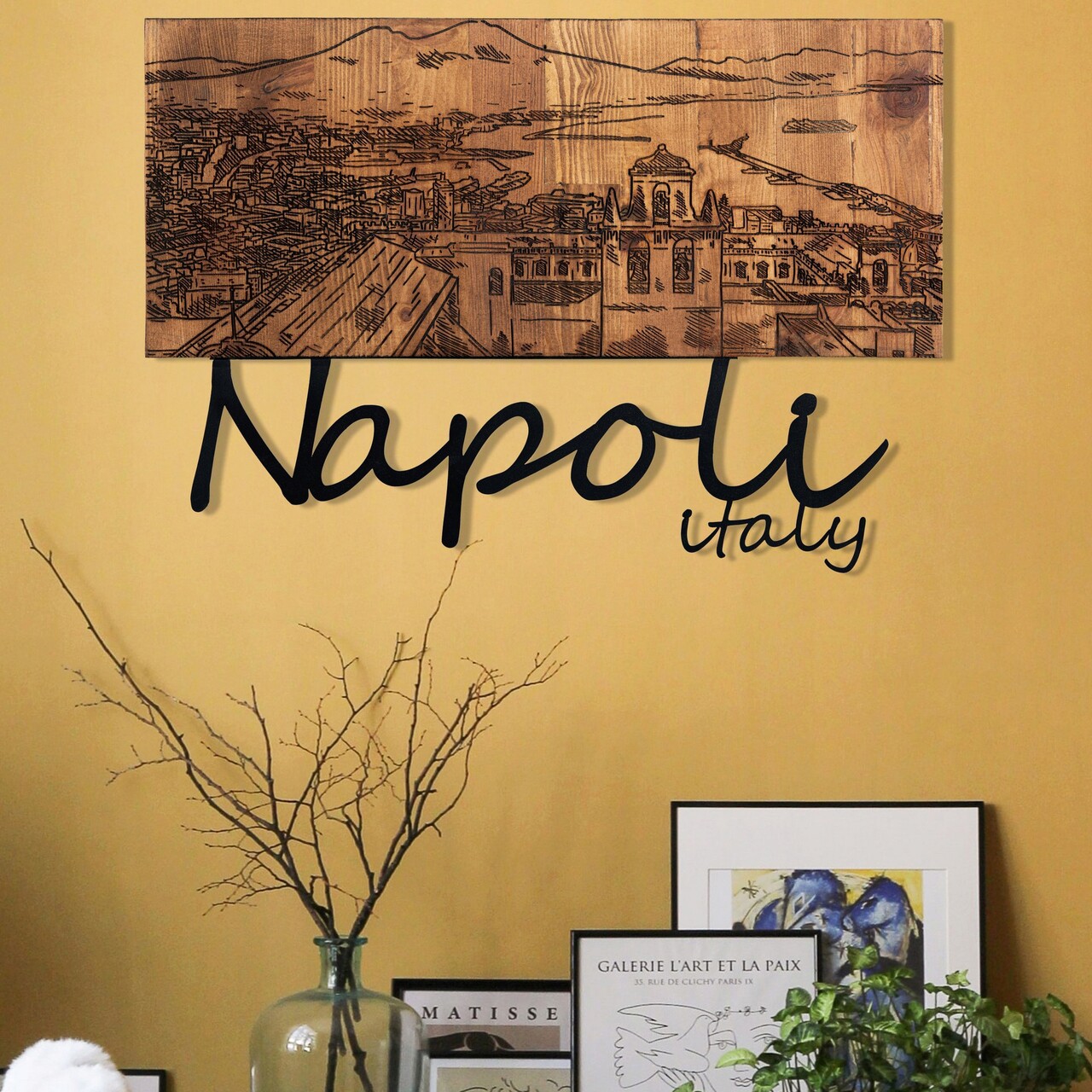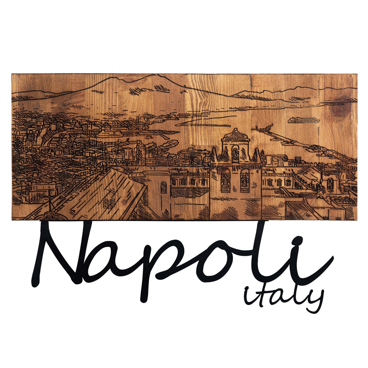 Decoratiune de perete, Napoli, lemn/metal, 58 x 40 cm, negru/maro