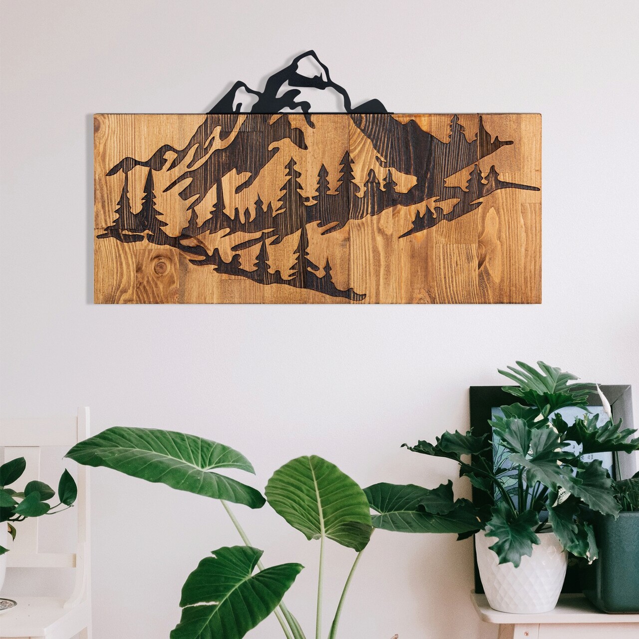 Decoratiune de perete, Nature, lemn/metal, 57.5 x 33 cm, negru/maro