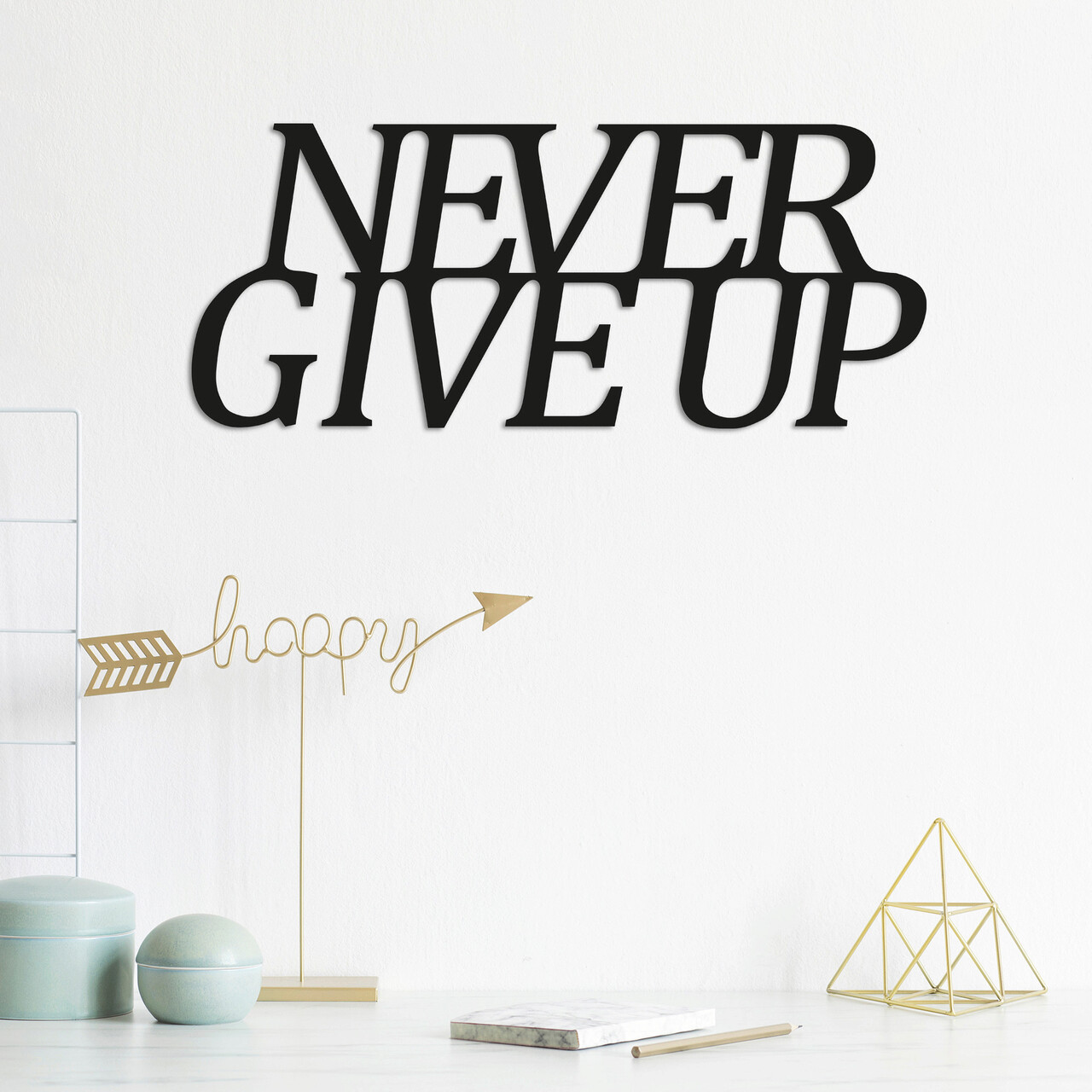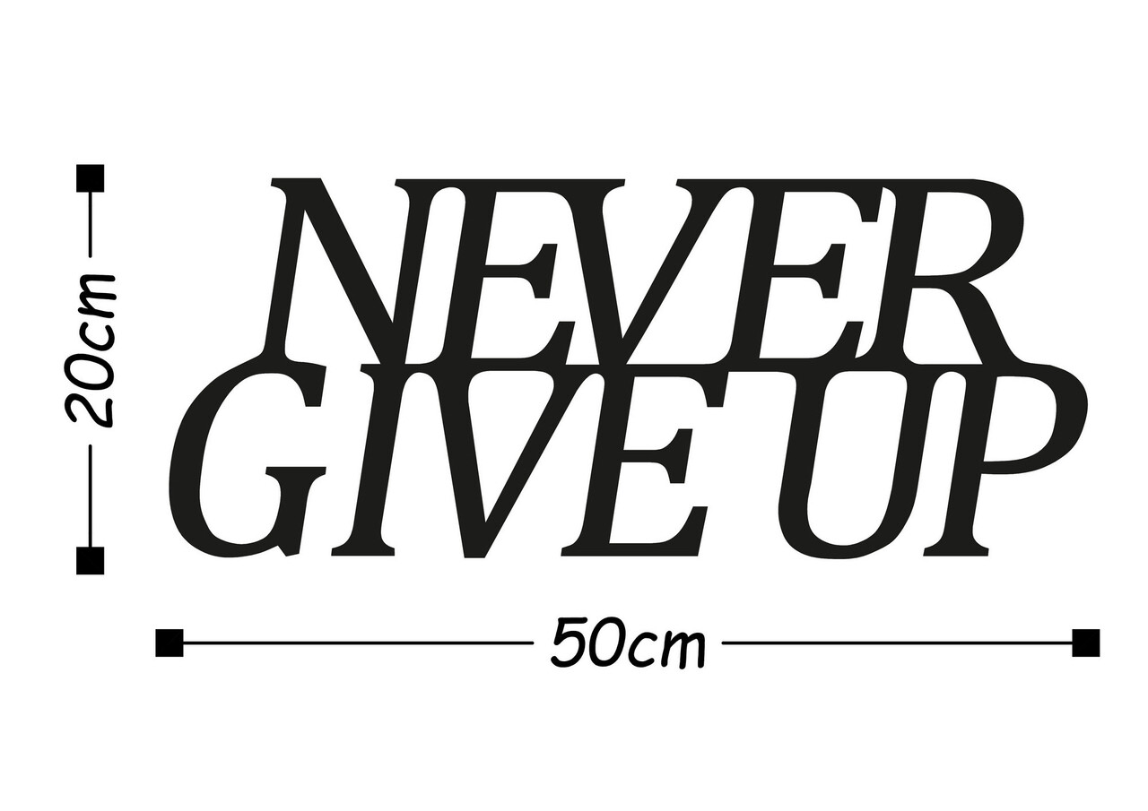 Decoratiune de perete, Never Give Up, Metal, Dimensiune: 50 x 20 cm, Negru