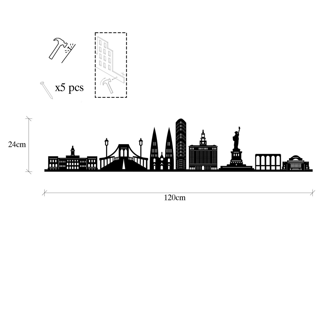 Decoratiune de perete, New York Skyline, Metal, Dimensiune: 120x24 cm, Negru