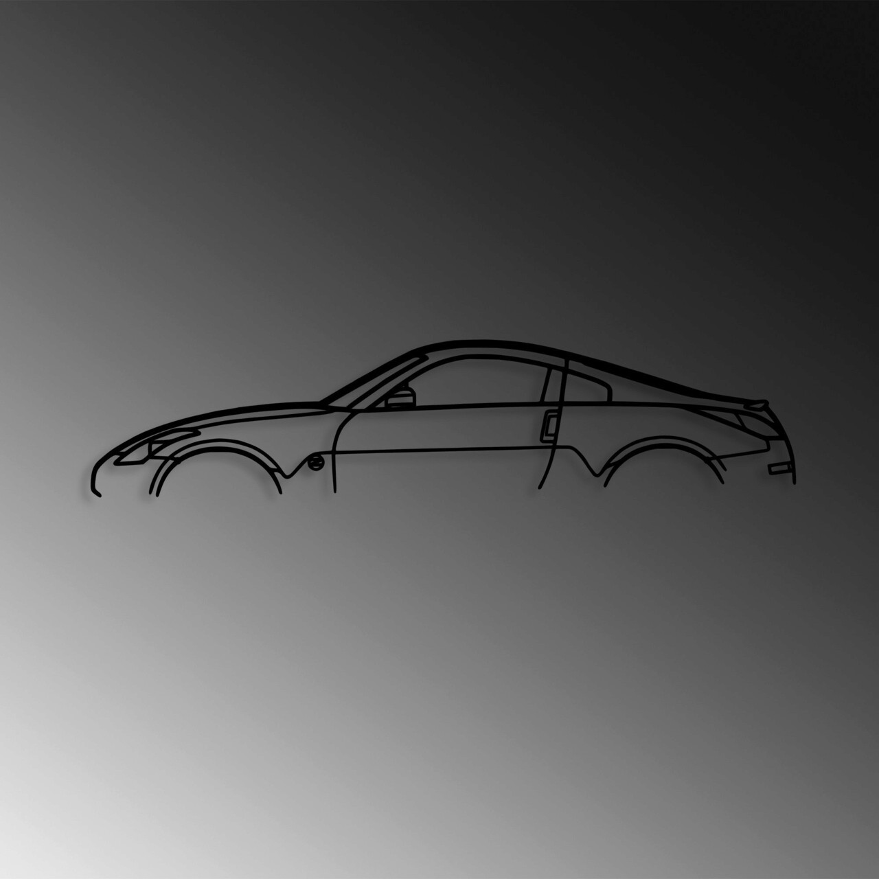 Decoratiune de perete, Nissan 350Z Silhouette, Metal, 70 x 15 cm, Negru