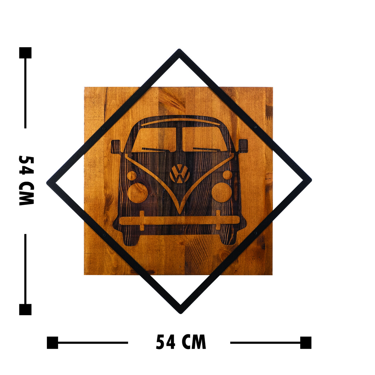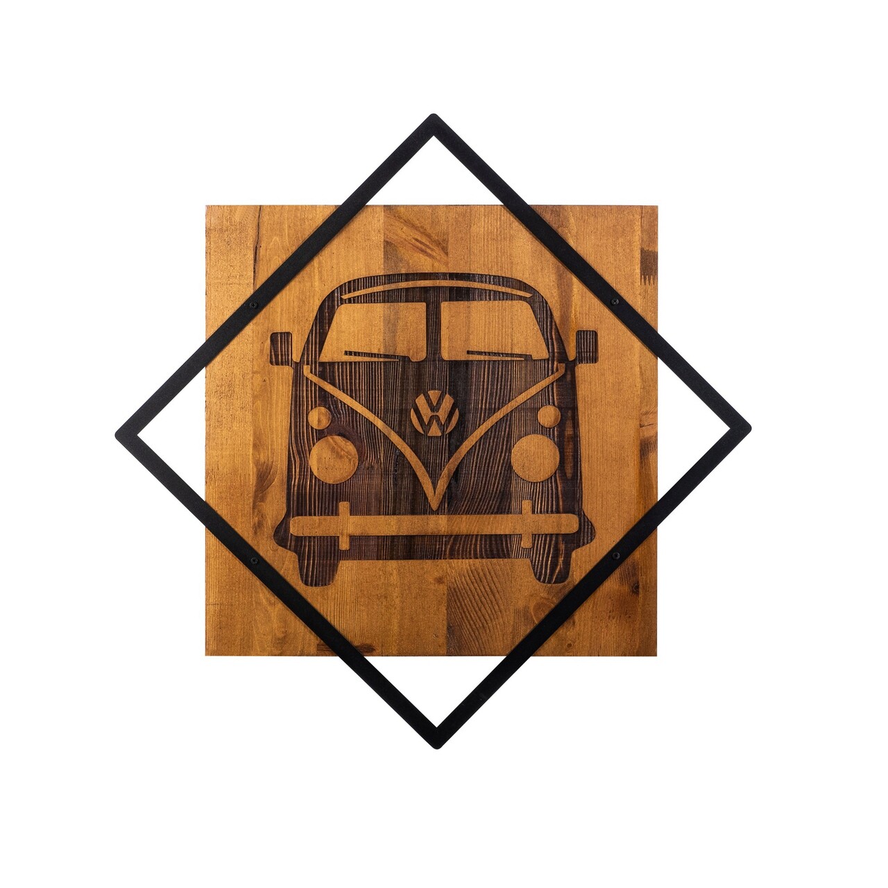 Decoratiune de perete, Old Car, 50% lemn/50% metal, Dimensiune: 54 x 54 cm, Nuc / Negru