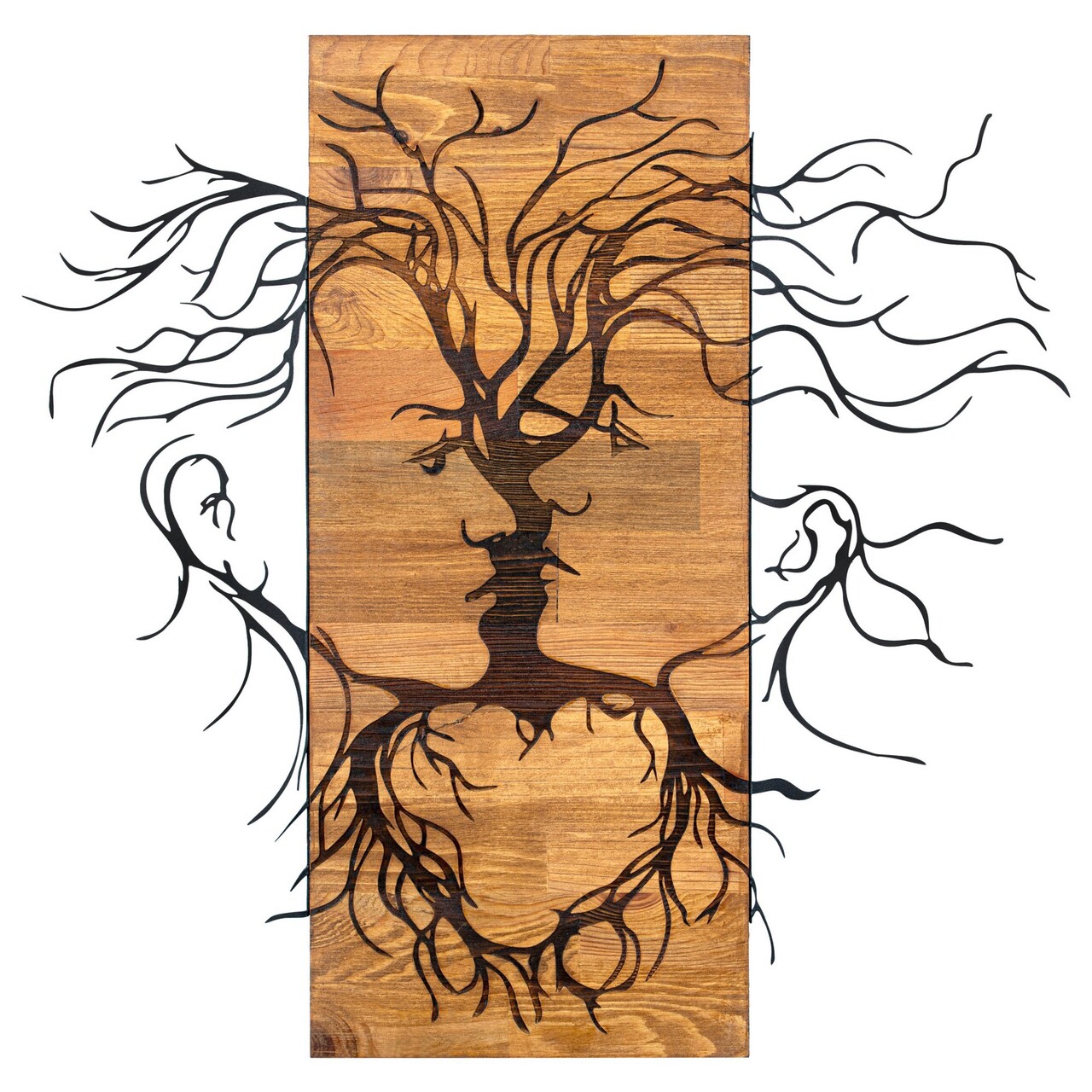 Decoratiune de perete, Old Love, lemn/metal, 60 x 57.5 cm, negru/maro