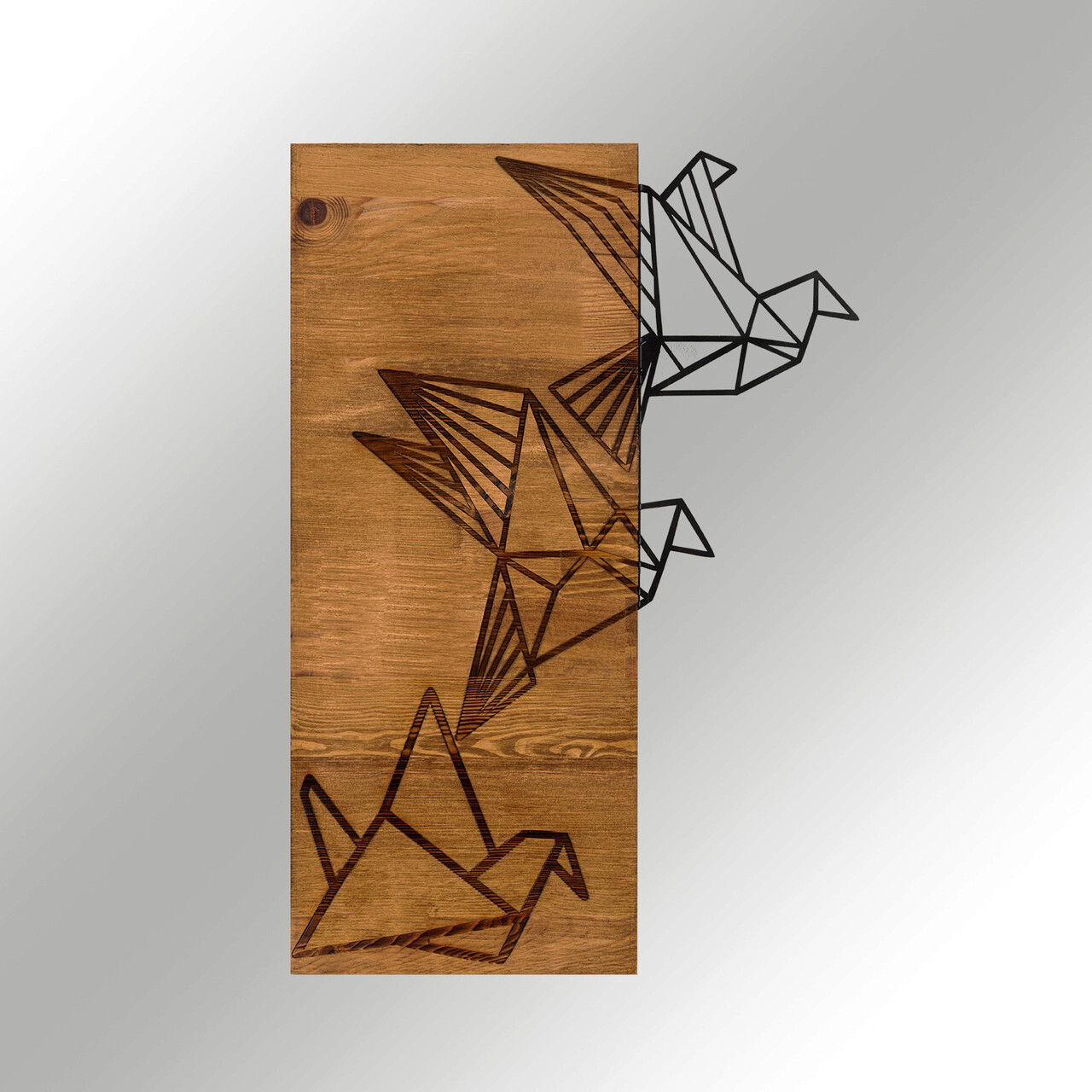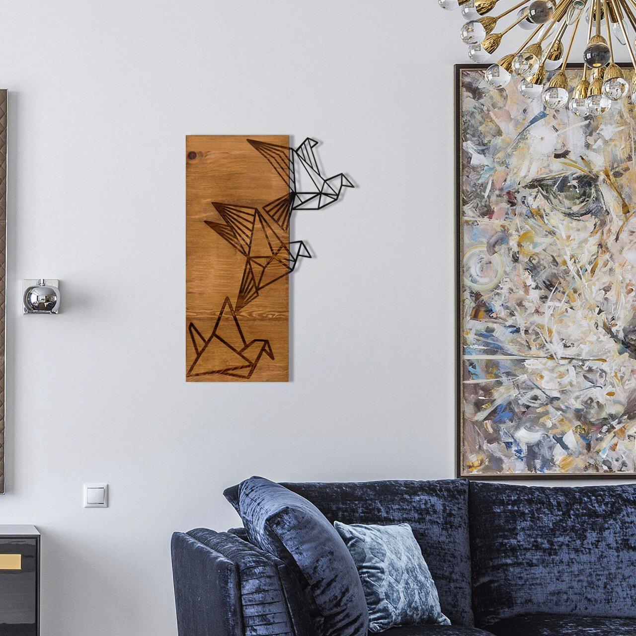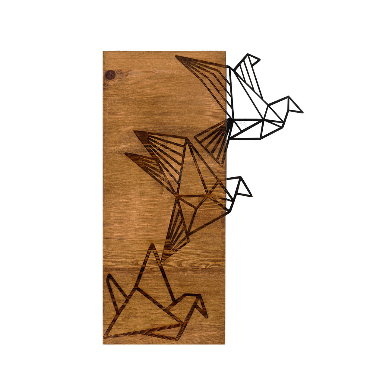 Decoratiune de perete, Oragami, lemn/metal, 36 x 60 cm, negru/maro