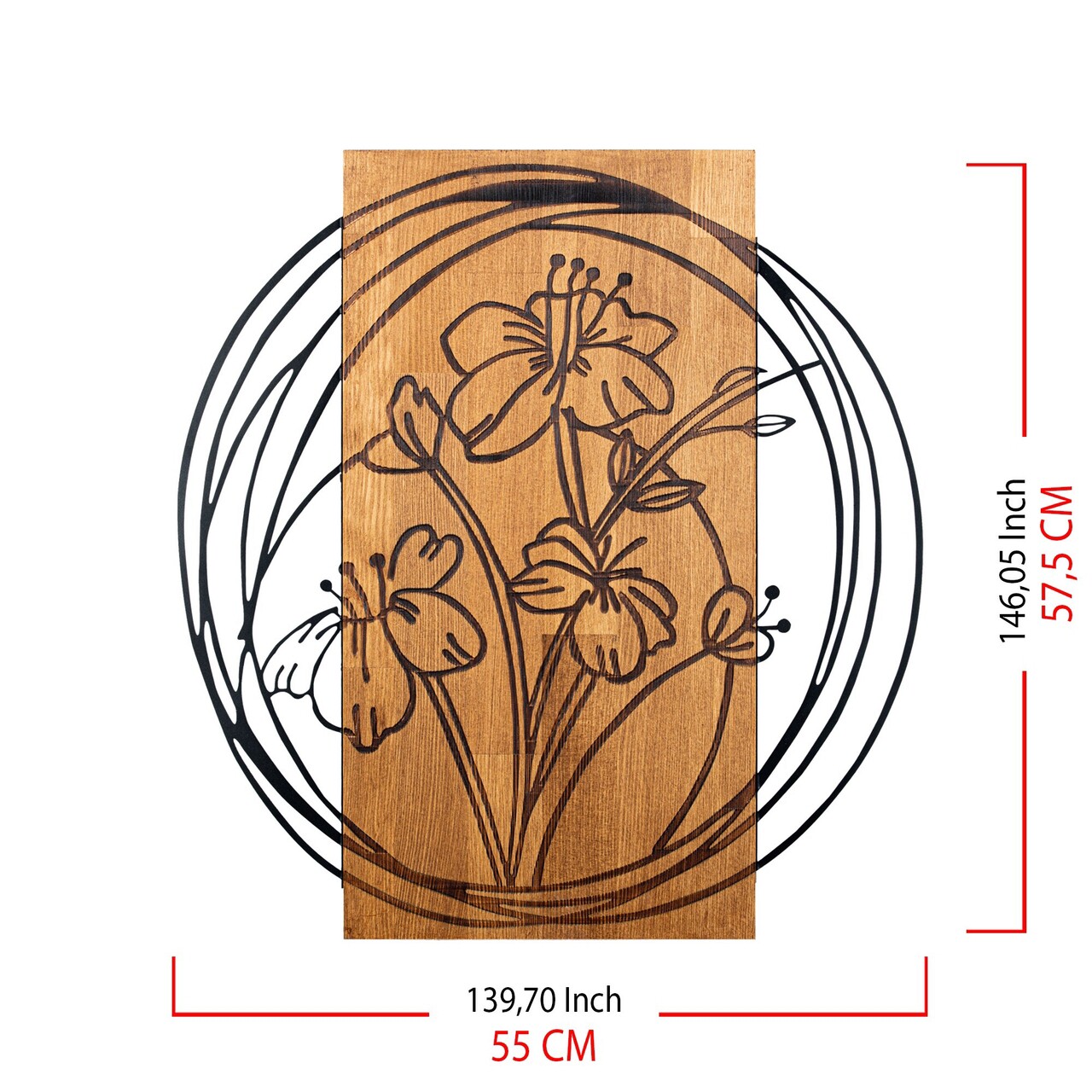 Decoratiune de perete, Orchid, lemn/metal, 55 x 57.5 cm, negru/maro