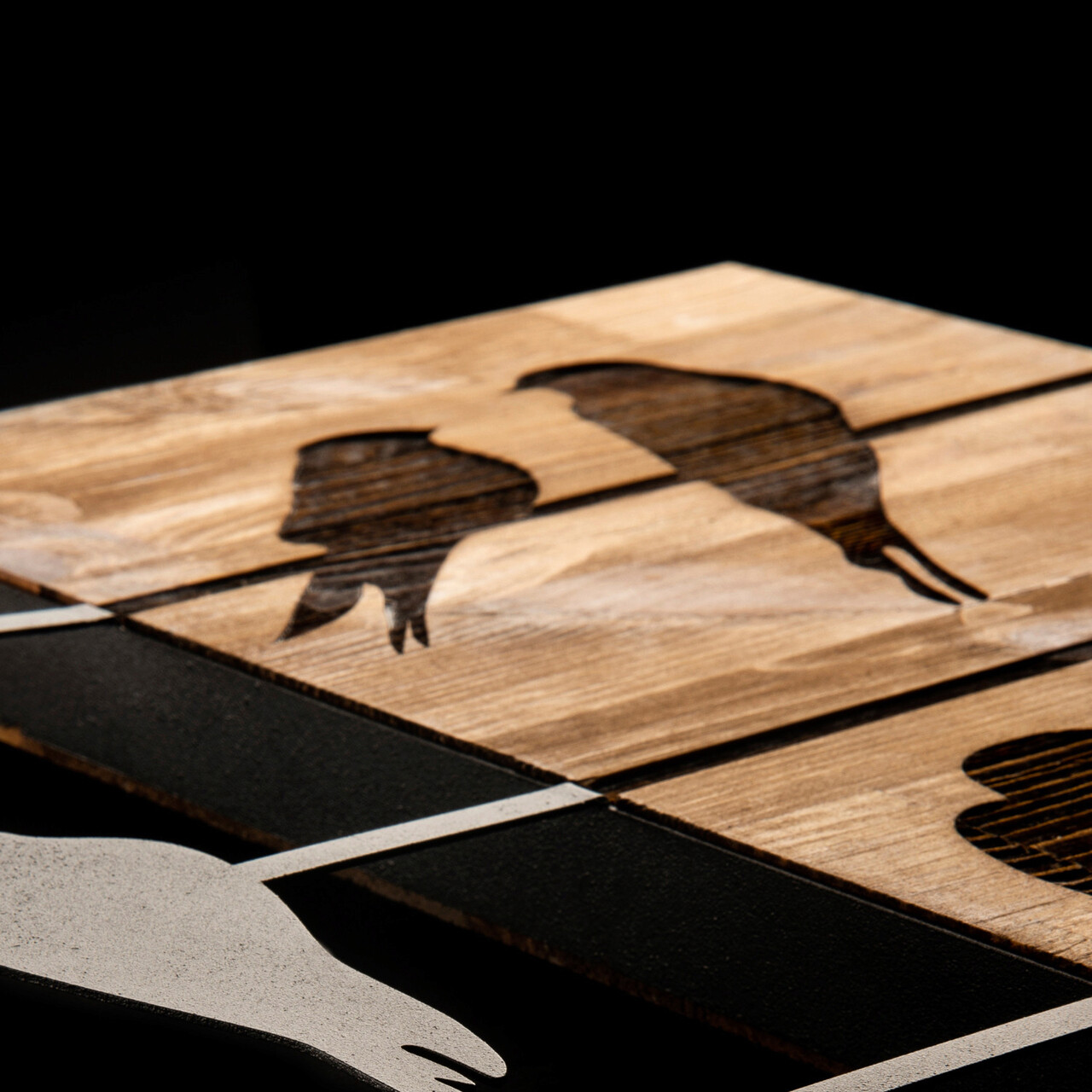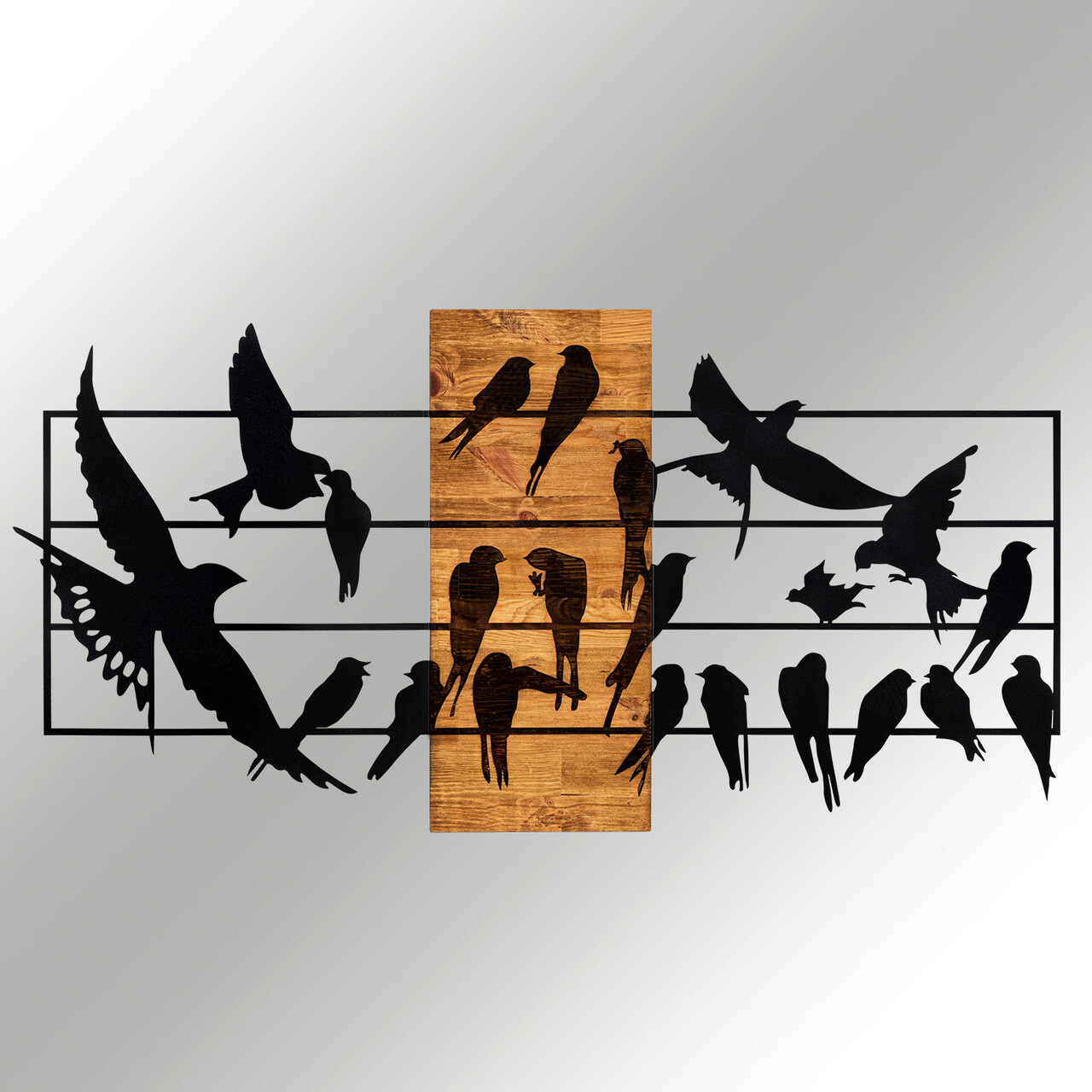 Decoratiune de perete, Ozgurluk, lemn/metal, 115 x 58 cm, negru/maro