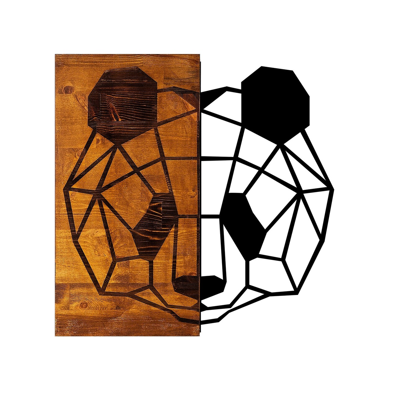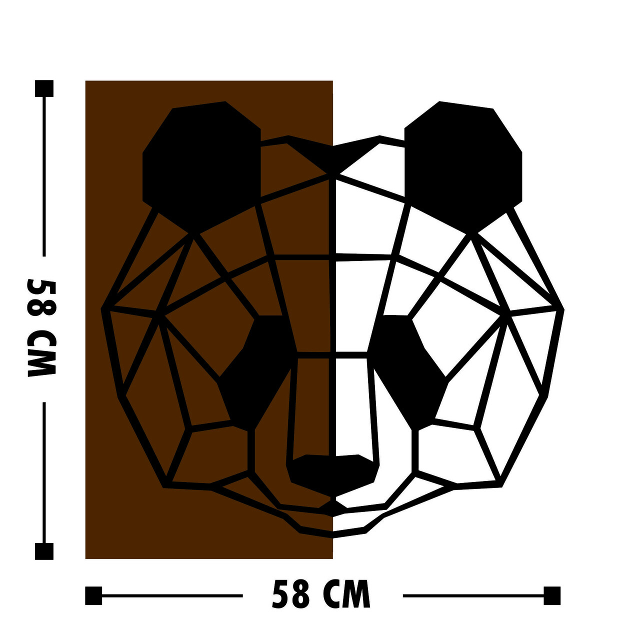Decoratiune de perete, Panda, 50% lemn/50% metal, Dimensiune: 58 x 58 cm, Nuc / Negru