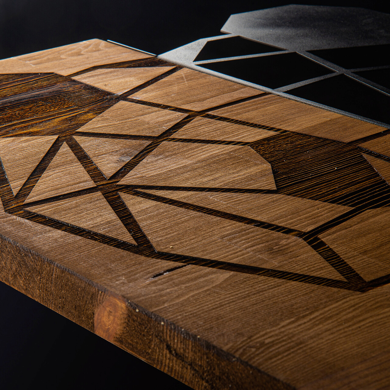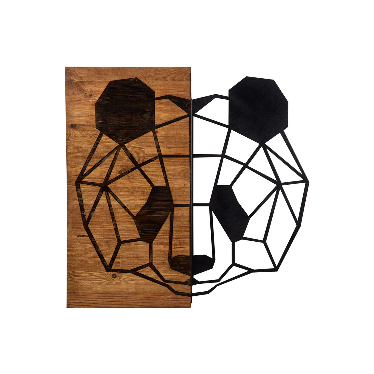 Decoratiune de perete, Panda, lemn/metal, 58 x 58 cm, negru/maro