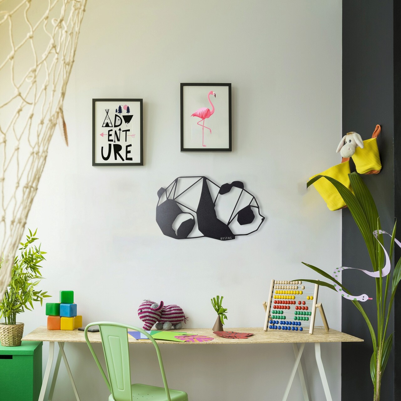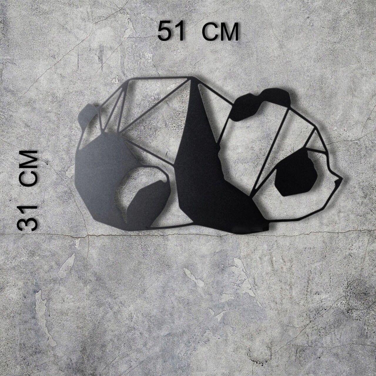 Decoratiune de perete, Panda, Metal, 31 x 51 cm, Negru