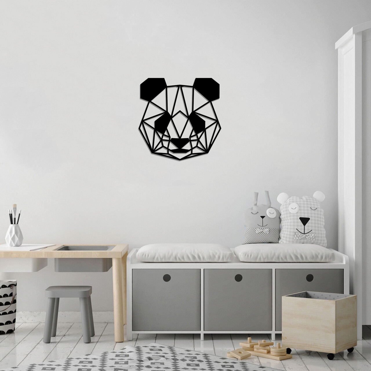 Decoratiune de perete, Panda, Metal, Dimensiune: 50 x 50 cm, Negru
