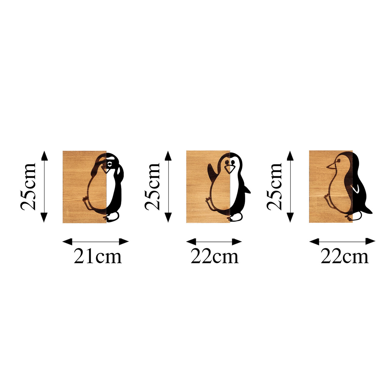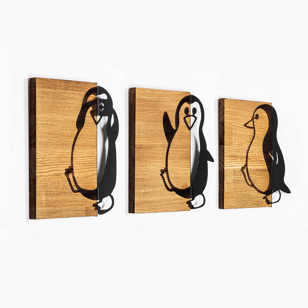 Decoratiune de perete, Penguins, 50% lemn/50% metal, No 1: 21 x 3 x 25 cm, Nuc negru