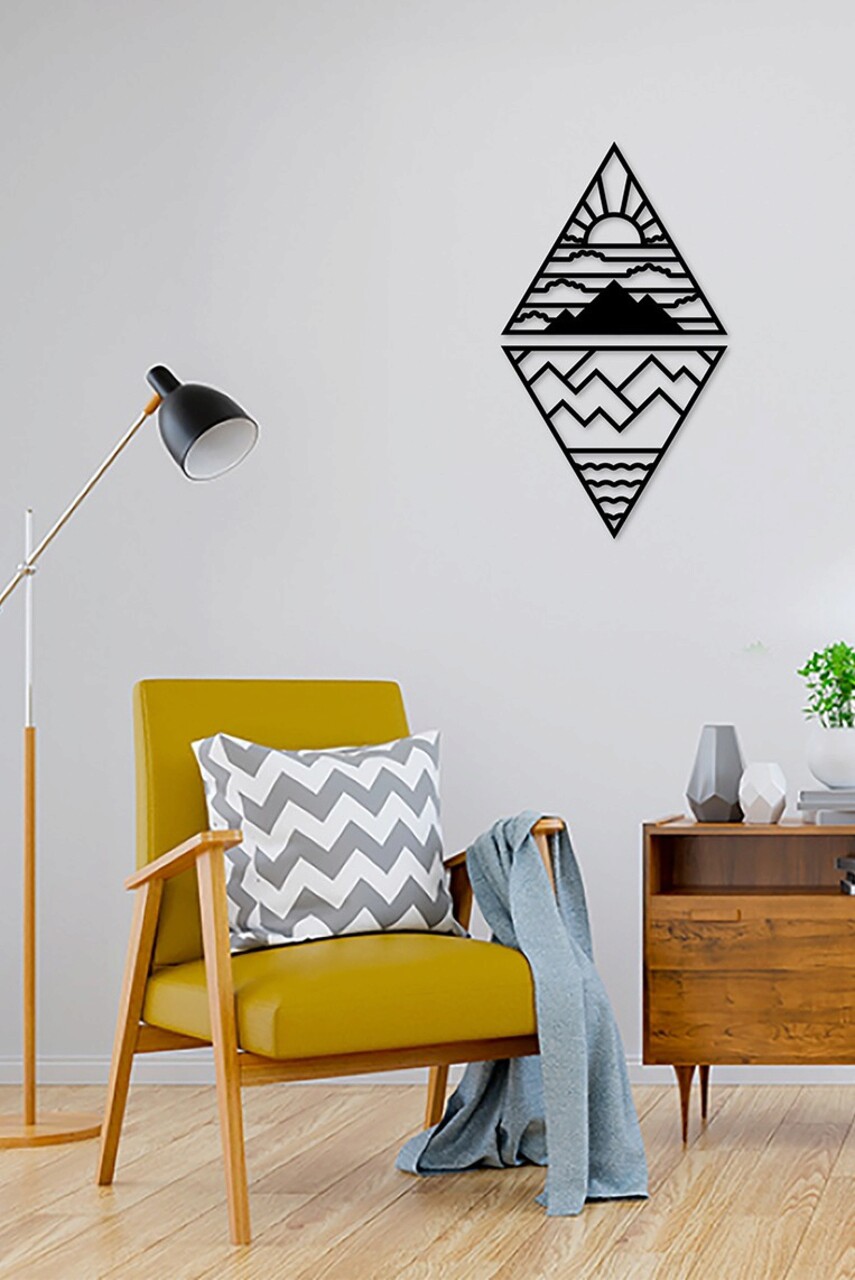 Decoratiune de perete, Piramit Manzara, Metal, 30 x 70 cm, Negru
