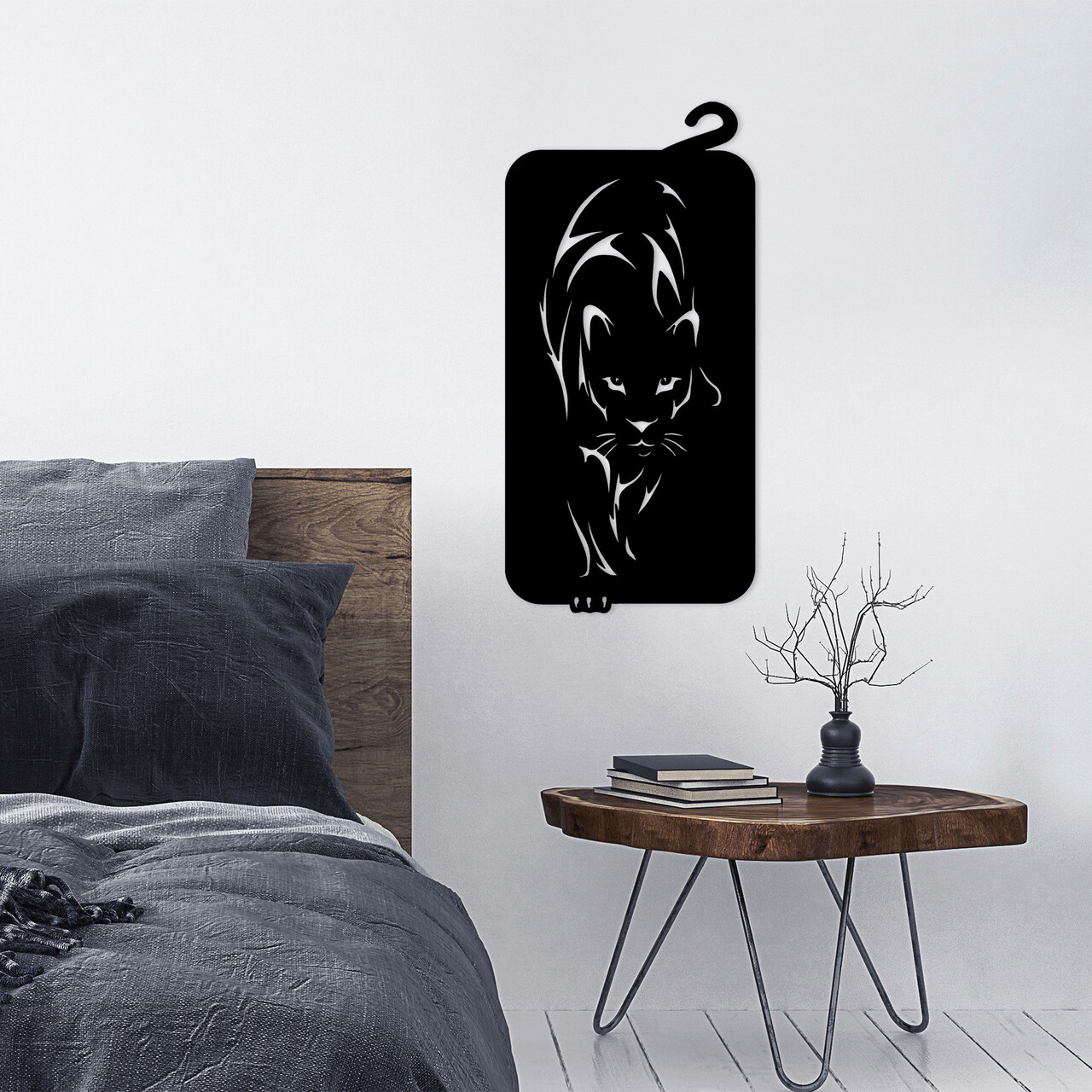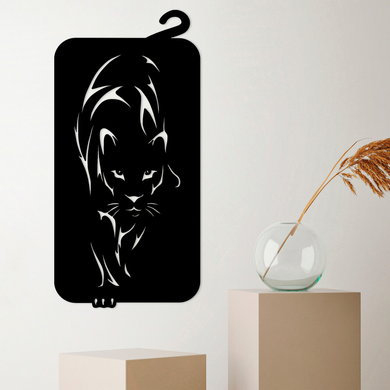 Decoratiune de perete, Puma 5, Metal, Dimensiune: 34 x 1,5 x 70 cm, Negru