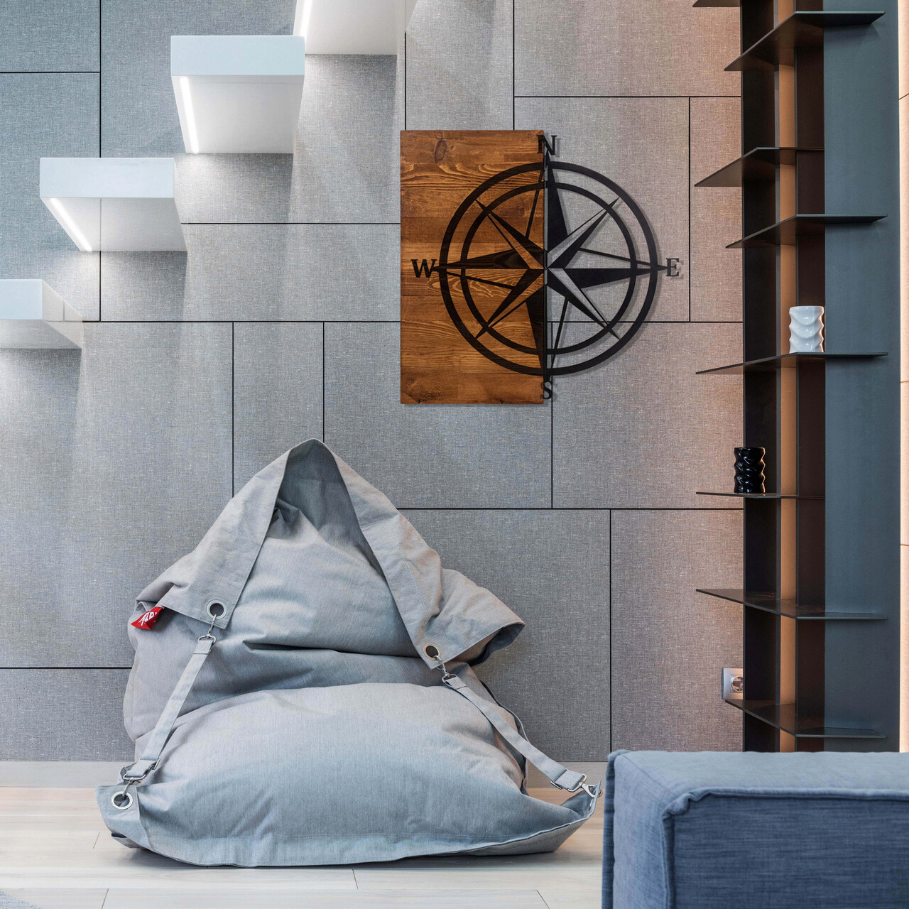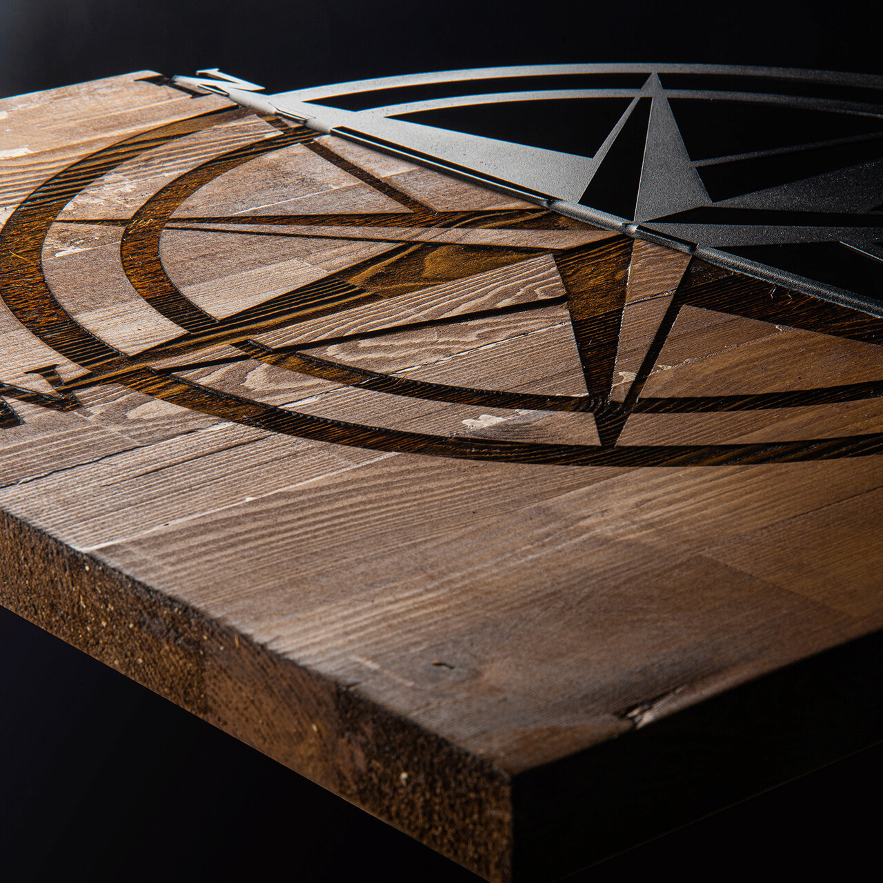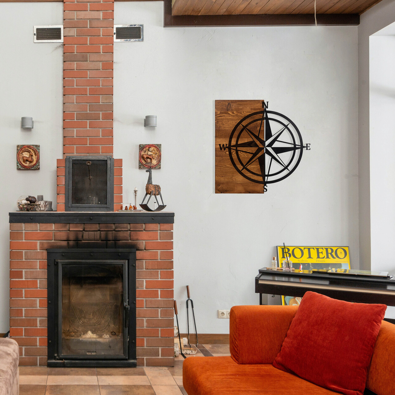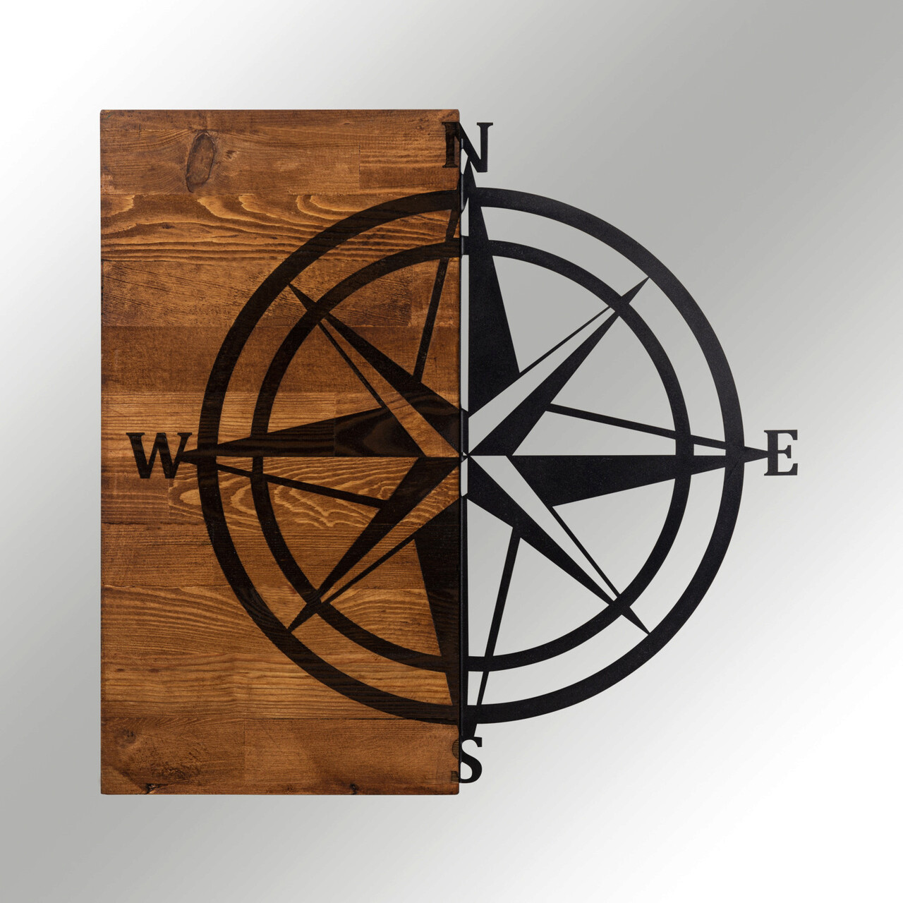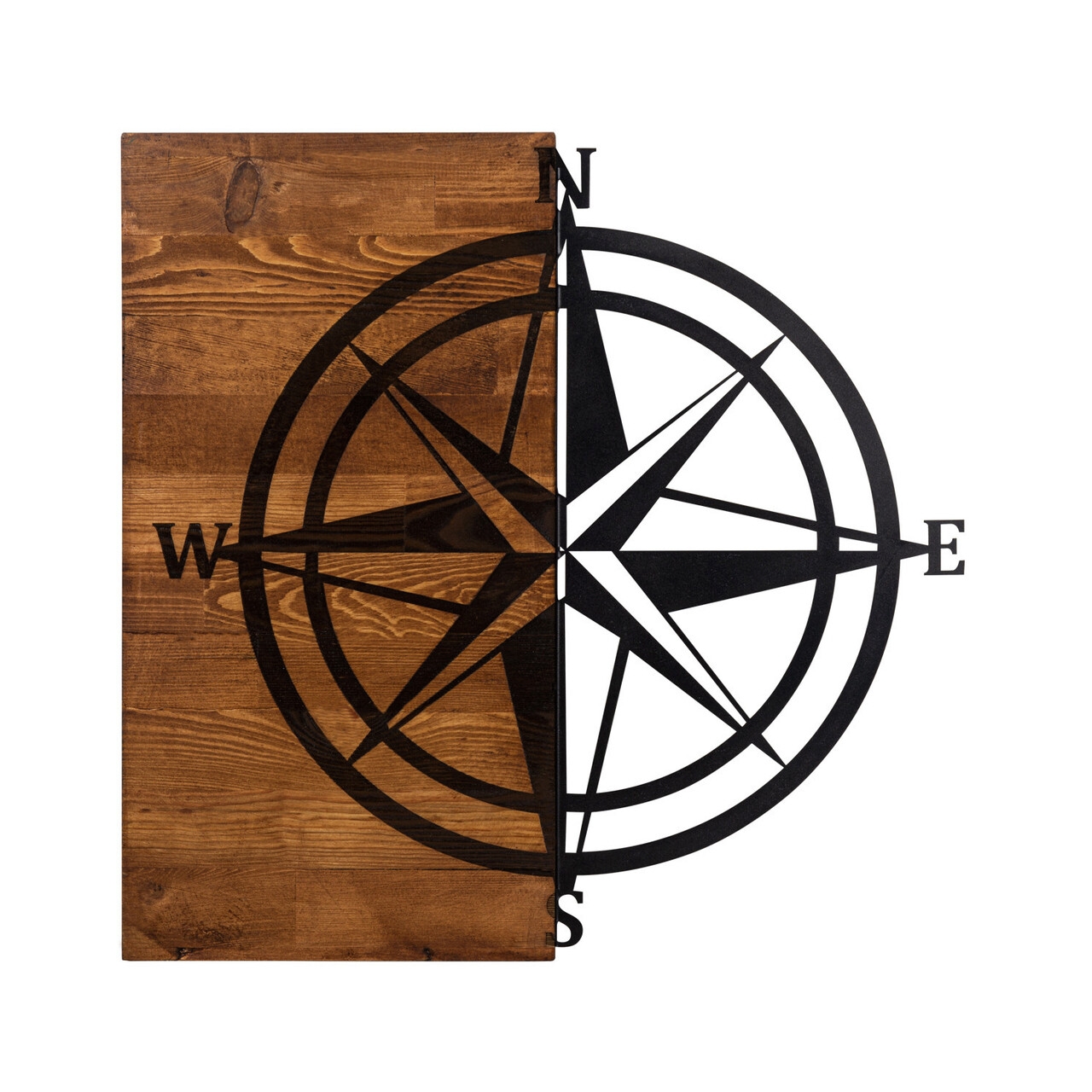 Decoratiune de perete, Pusula, lemn/metal, 58 x 58 cm, negru/maro