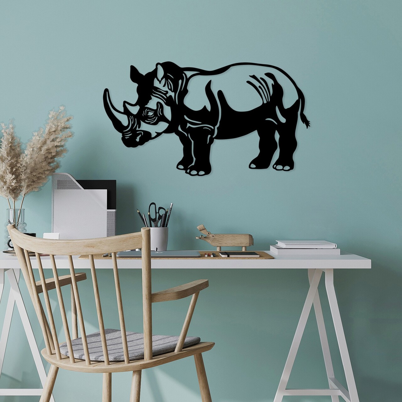 Decoratiune de perete, Rhino, Metal, 70 x 39 cm, Negru