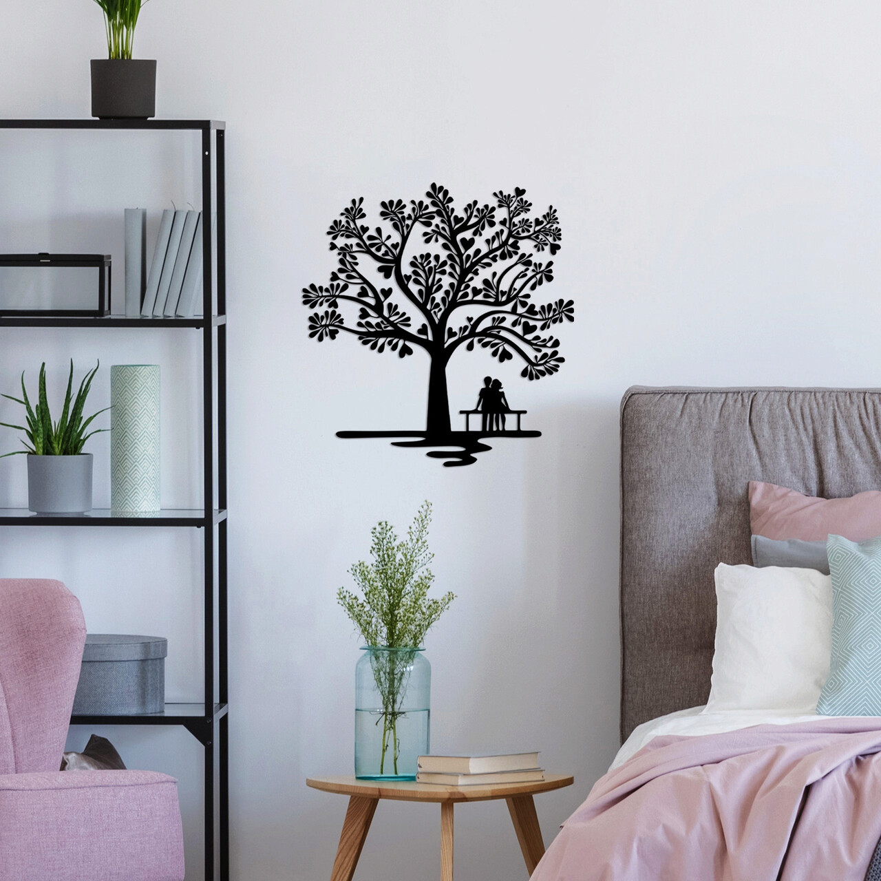 Decoratiune de perete, Romance Under The Tree, Metal, Dimensiune: 66 x 69 cm, Negru