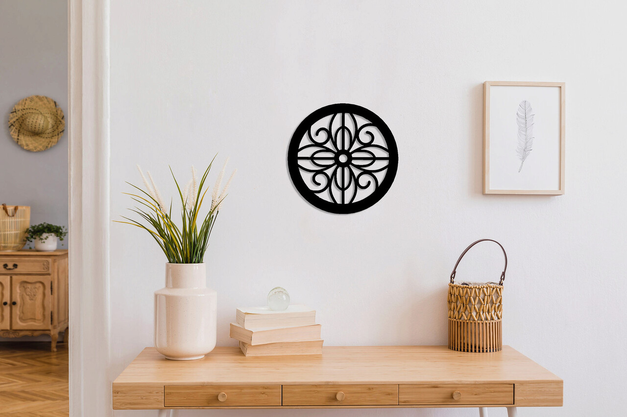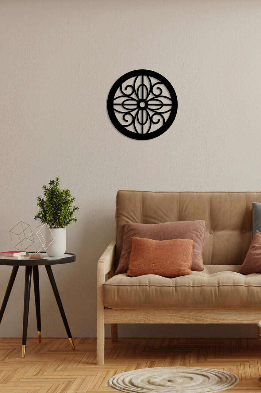 Decoratiune de perete, Rustic Circles 1, Metal, 30 x 30 cm, Negru