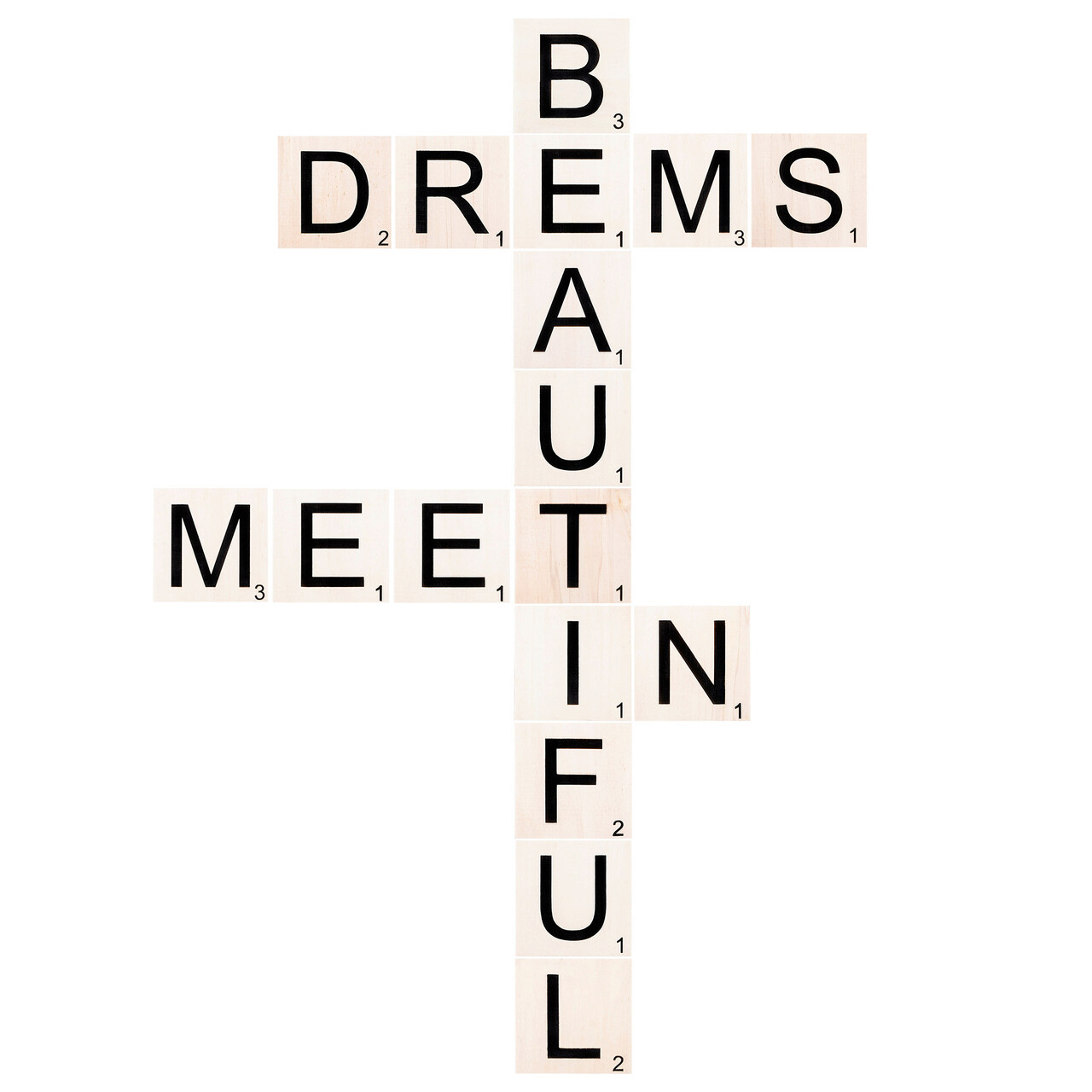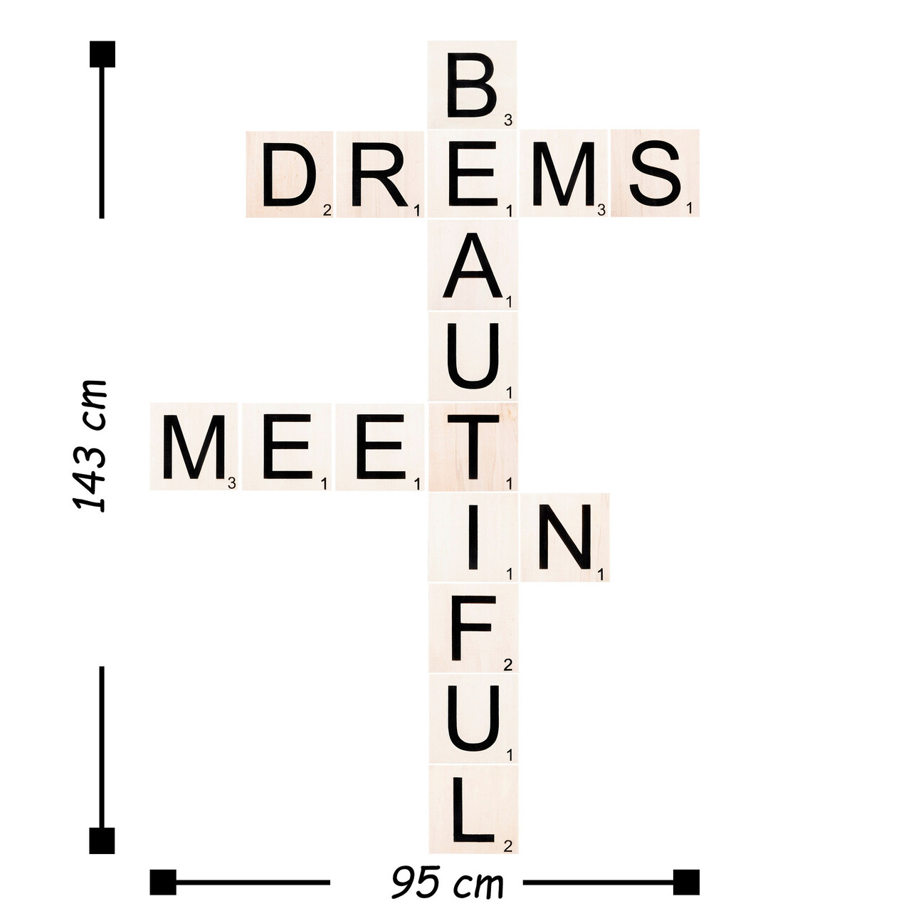 Decoratiune de perete, Scrabble Set, Lemn, 95 x 143 cm, Alb/Negru